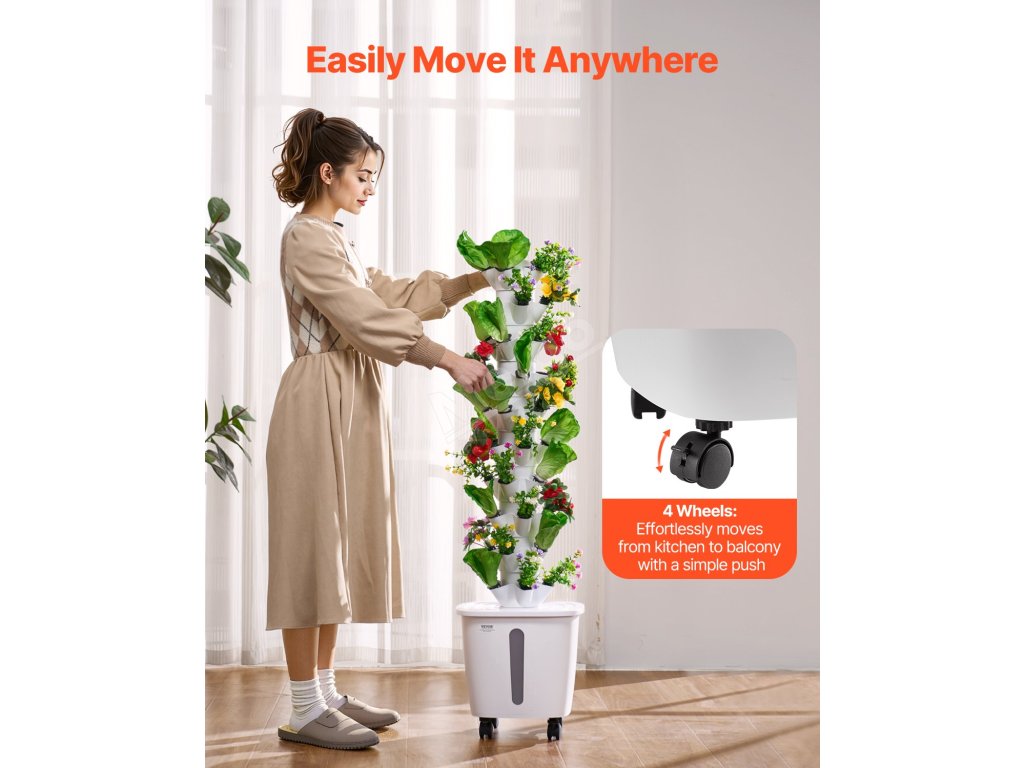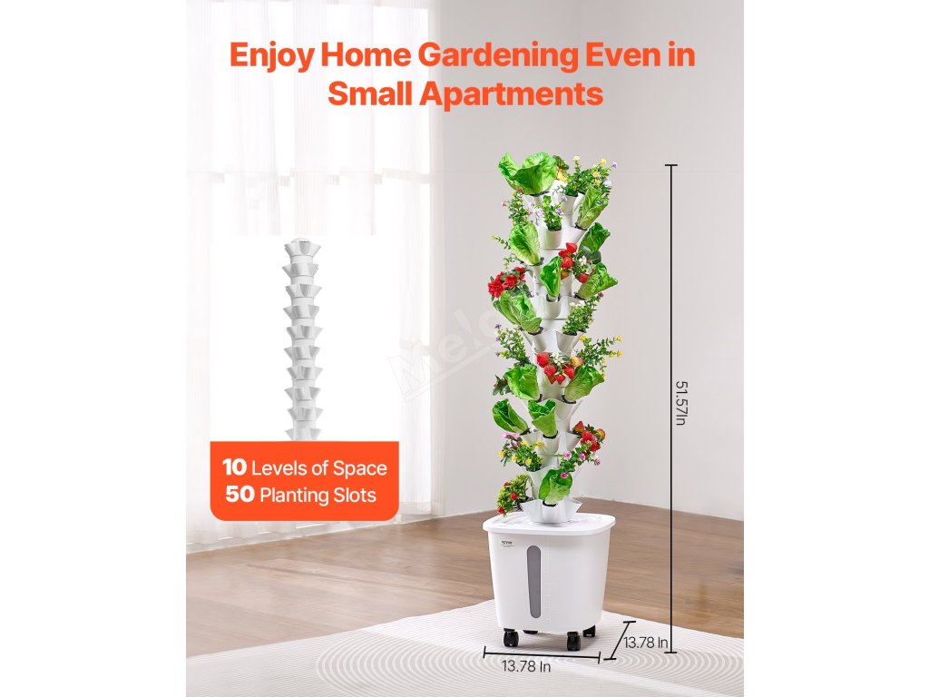 Hydroponická věž 50 otvorů, 10 pater, s čerpadlem a kolečky
