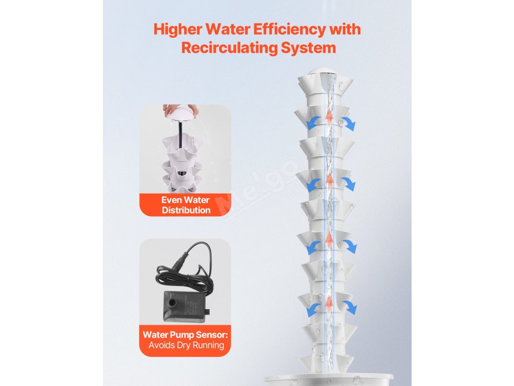 Tato hydroponická věž s průtokem 600 l/h poskytuje dostatek kyslíku ke kořenům rostlin a podporuje jejich zdravý růst. Výška zdvihu 2 m/6,56 m zajišťuje rovnoměrnou distribuci vody ke každému rostlinnému lusku, což pomáhá rostlinám prospívat v prostředí bohatém na kyslík.