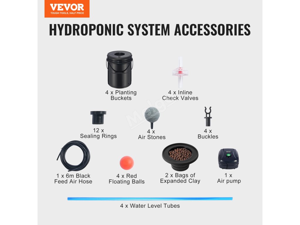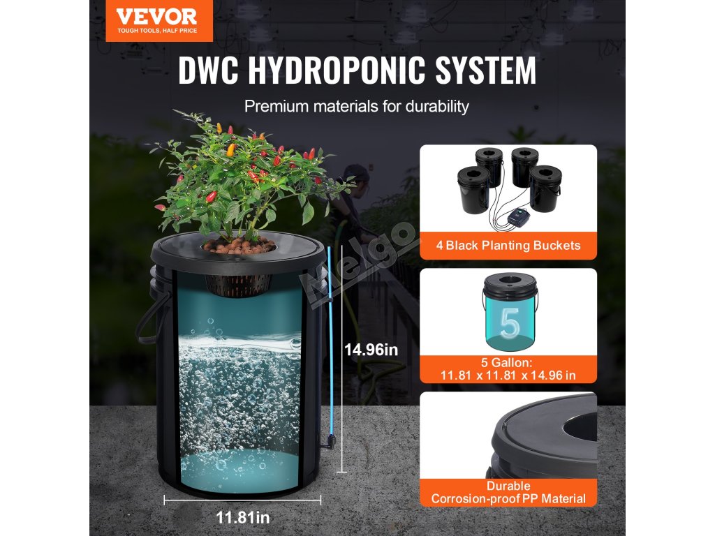 Hydroponický systém DWC 4 vědra 5-Gallon s čerpadlem a indikátorem