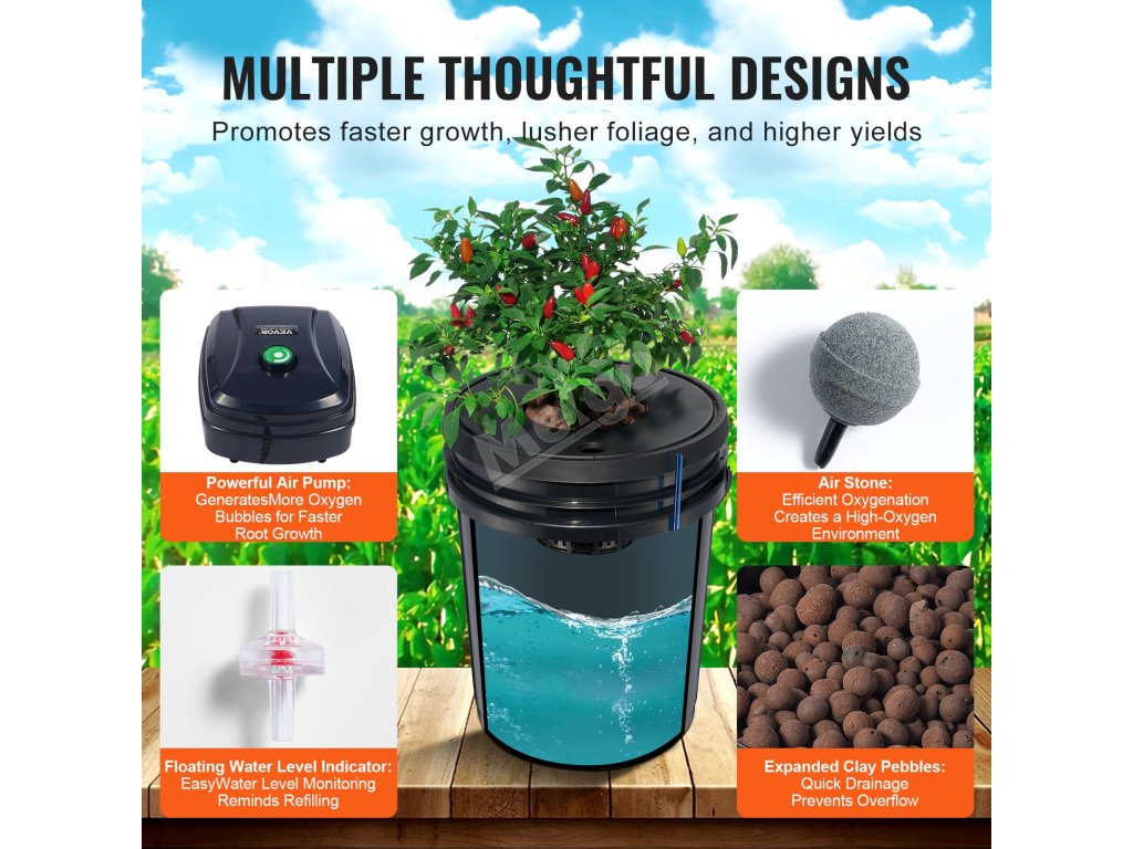 Tento kbelík pro hluboké pěstování vody lze snadno instalovat do pěstebního stanu, na zahradu, balkon nebo do kanceláře, domu. Vhodné pro pěstování zeleniny, ovoce, květin a plodin. Není omezena ročními obdobími a lze ji pěstovat bez půdy.