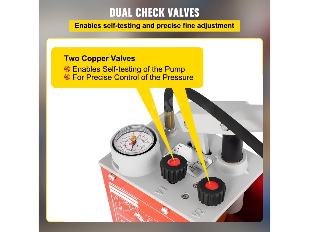 Naše hydrostatické zkušební čerpadlo je vybaveno dvěma měděnými zpětnými ventily, které mohou přesně regulovat zpětný tok a zvyšovat přesnost měření. Umožňuje také samočinné testování čerpadla.