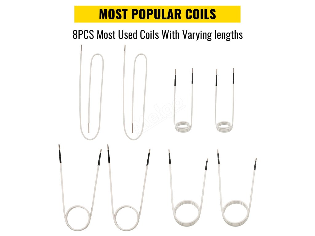 Naše sada indukčních topných cívek obsahuje šest nejoblíbenějších cívek různých průměrů a dvě volné cívky, které můžete použít k rychlému odstranění zrezivělých šroubů a matic.