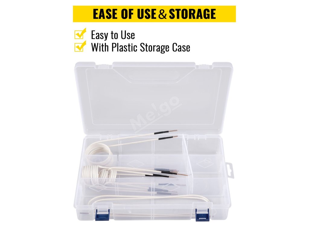 Naše sada indukčních cívek využívá jednoduchou konstrukční koncepci. Díky tomu se snadno používá, je odolná a dodává se s plastovou krabičkou pro snadné skladování.
