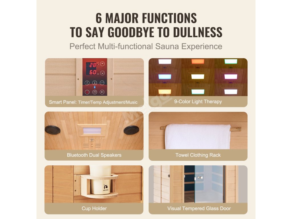 Tato saunová místnost je díky svému vynikajícímu designu vhodná na různá místa. Ať už v obývacím pokoji, koupelně, ložnici, sklepě nebo tělocvičně, můžete si kdykoli vychutnat relaxaci a pohodlí sauny.