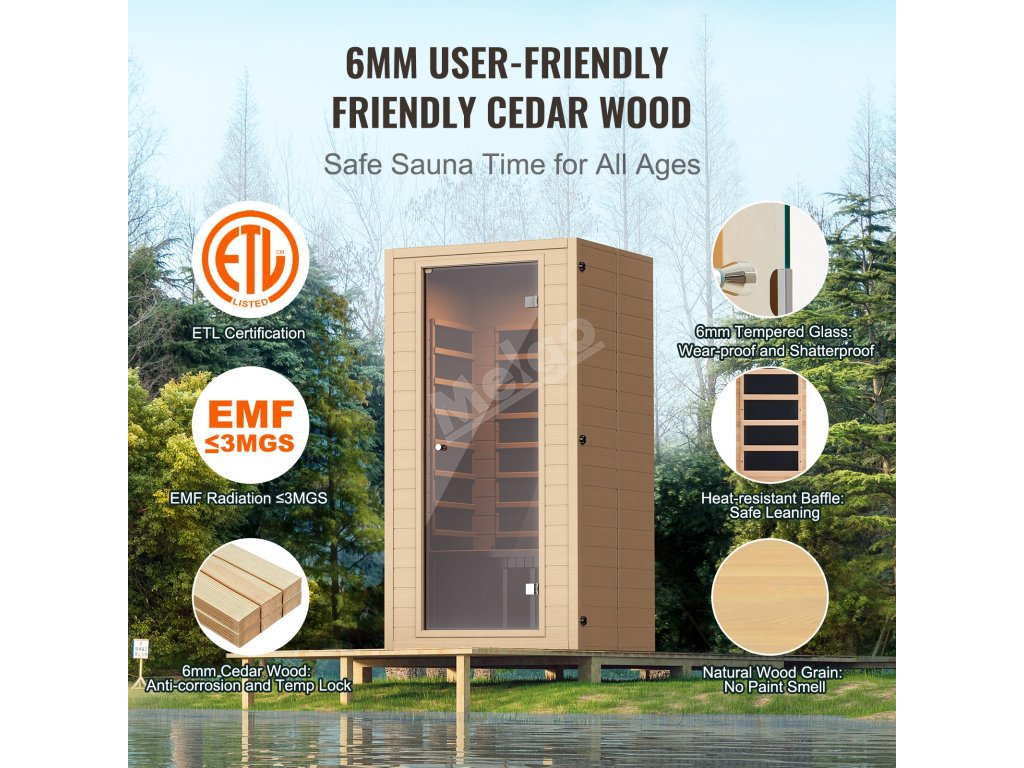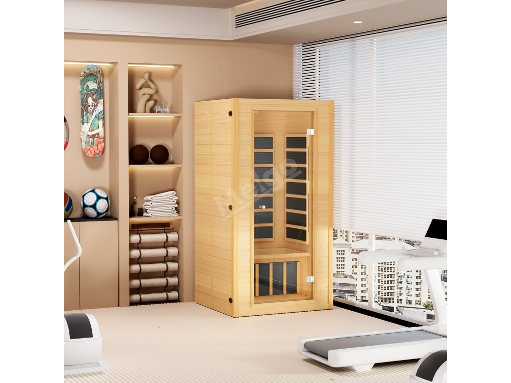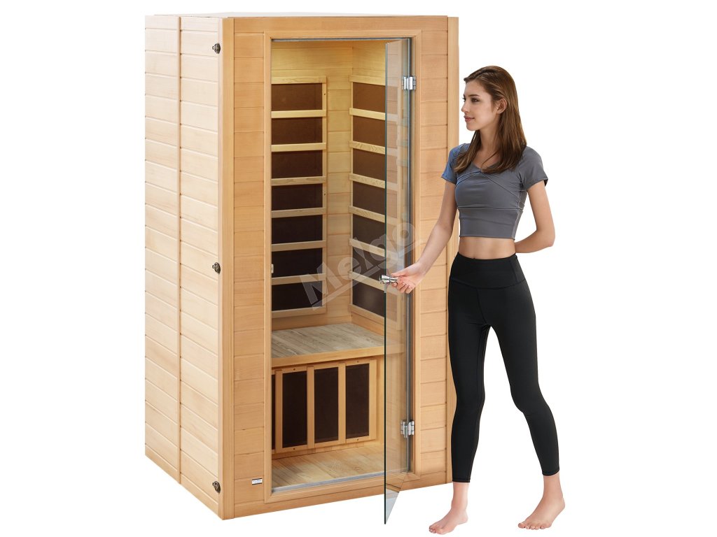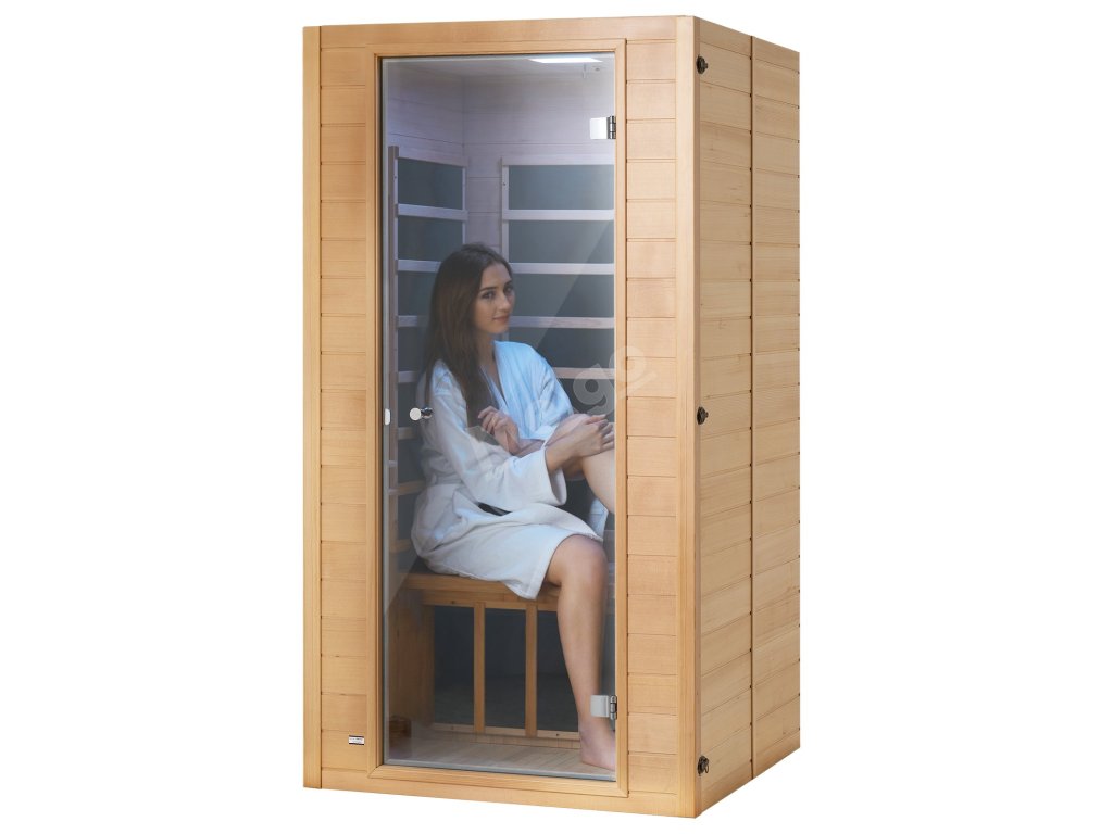 Infračervená dřevěná sauna pro 1–2 osoby, nízké emf, chromoterapie