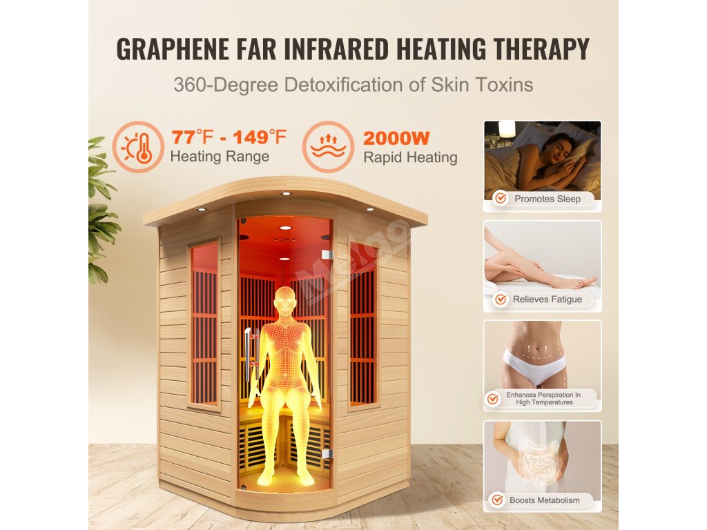Infračervená dřevěná sauna pro 2 osoby, 1850W, kalené dveře, Bluetooth