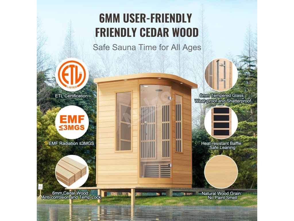 Tato saunová místnost je díky svému vynikajícímu designu vhodná na různá místa. Ať už v obývacím pokoji, koupelně, ložnici, sklepě nebo tělocvičně, můžete si kdykoli vychutnat relaxaci a pohodlí sauny.