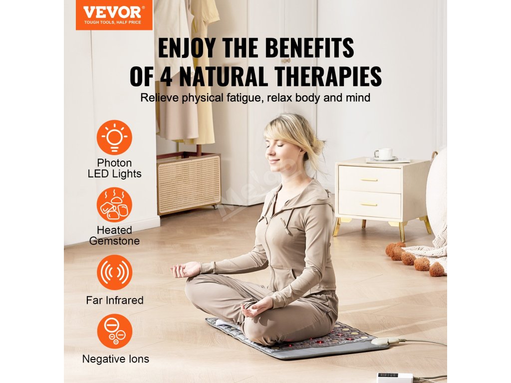 Tato vyhřívací podložka z přírodních drahokamů proniká pomocí 660nm fotonového červeného světla a dalekých infračervených paprsků hluboko do svalových vrstev, čímž zmírňuje bolest a únavu, podporuje uvolnění celého těla a poskytuje hlubší terapeutický účinek pro maximální pohodlí.
