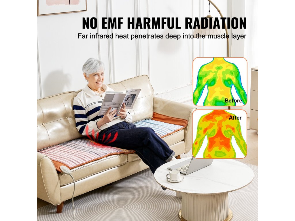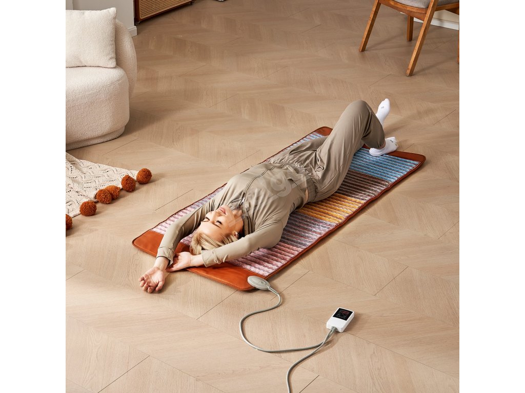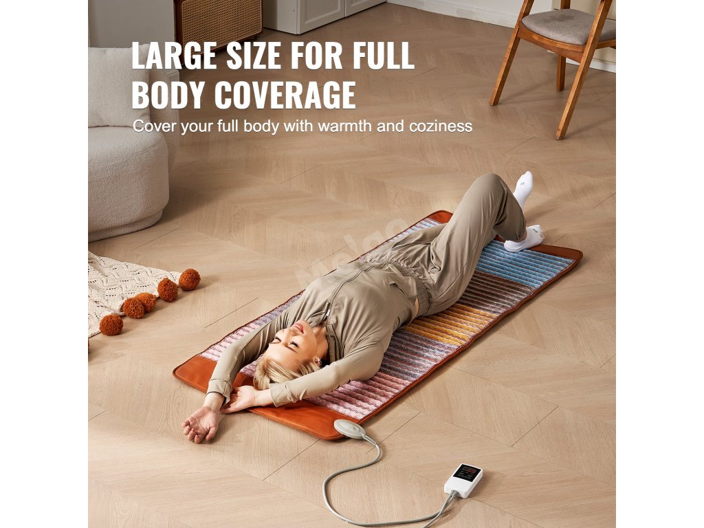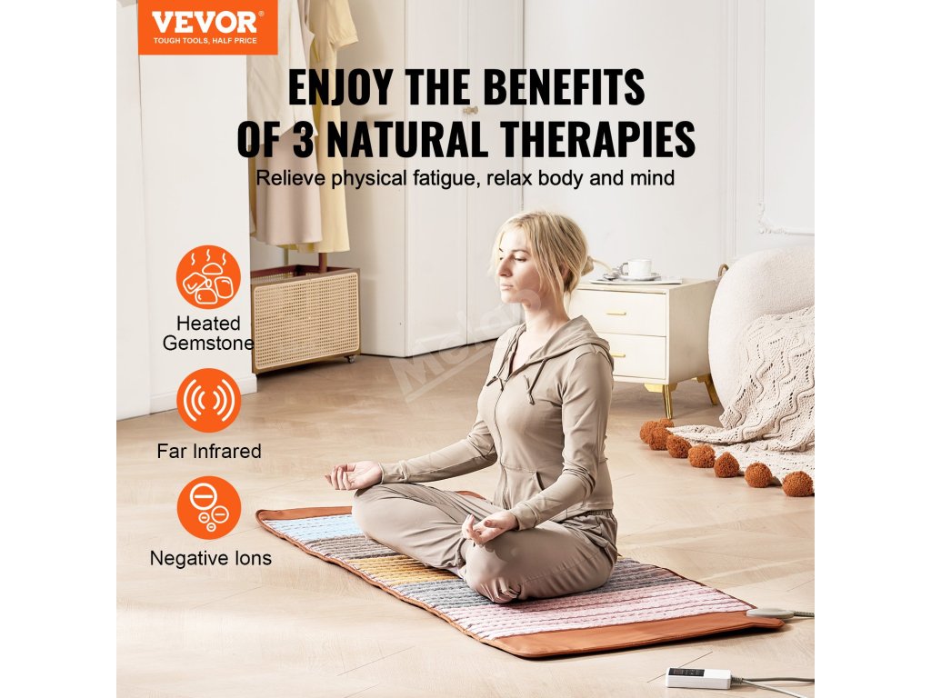 Pocítíte uklidňující teplo, které zmírňuje stres a uvolňuje tělo. Naše ametystová vyhřívací podložka o rozměrech 67" x 27" kombinuje 5 vyhřívaných přírodních drahokamů, daleké infračervené paprsky a záporné ionty, které pronikají hluboko do svalů, zmírňují bolest, zmírňují bolestivost a podporují krevní oběh.
