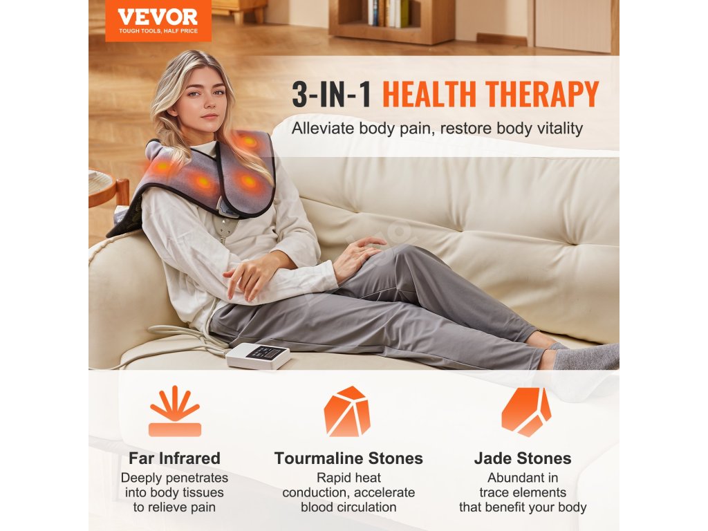 Daleko infračervená vyhřívací podložka VEVOR je ideální volbou pro ty, kteří hledají uklidňující teplo a zdraví. Kombinuje daleké infračervené paprsky, 54 přírodních nefritových a 30 turmalínových kamenů, hloubkově zklidňuje svalové napětí, podporuje krevní oběh a zlepšuje kvalitu spánku. Vyberte si ji a osvojte si zdravější život!