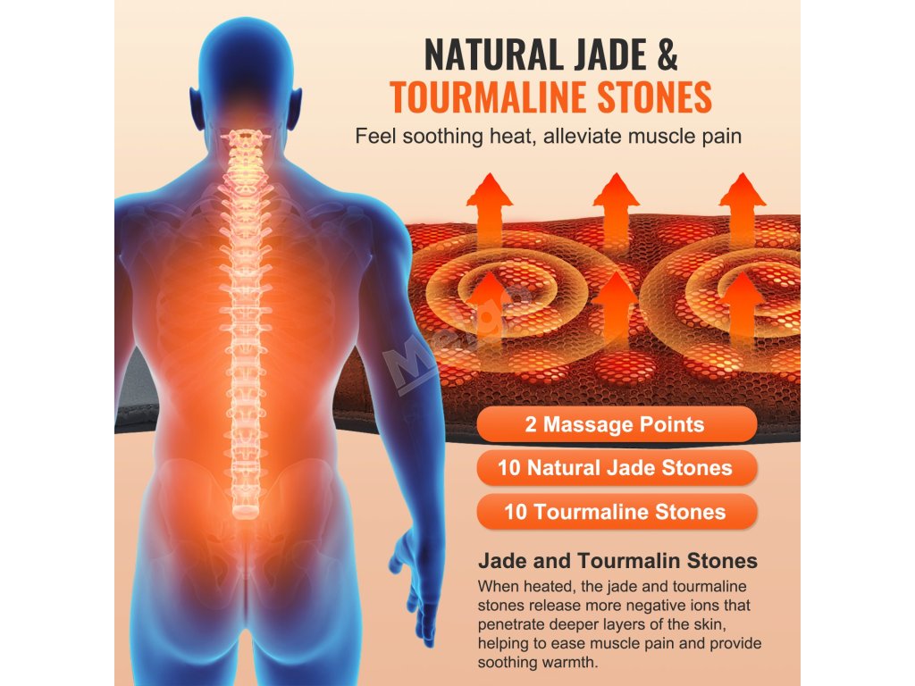 Infračervený pás na bedra 10 jade/10 turmalín, 103–159 ℉, 3 vibrace