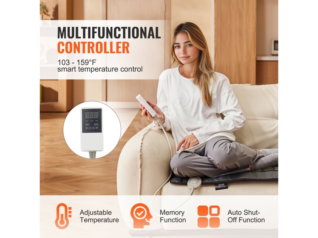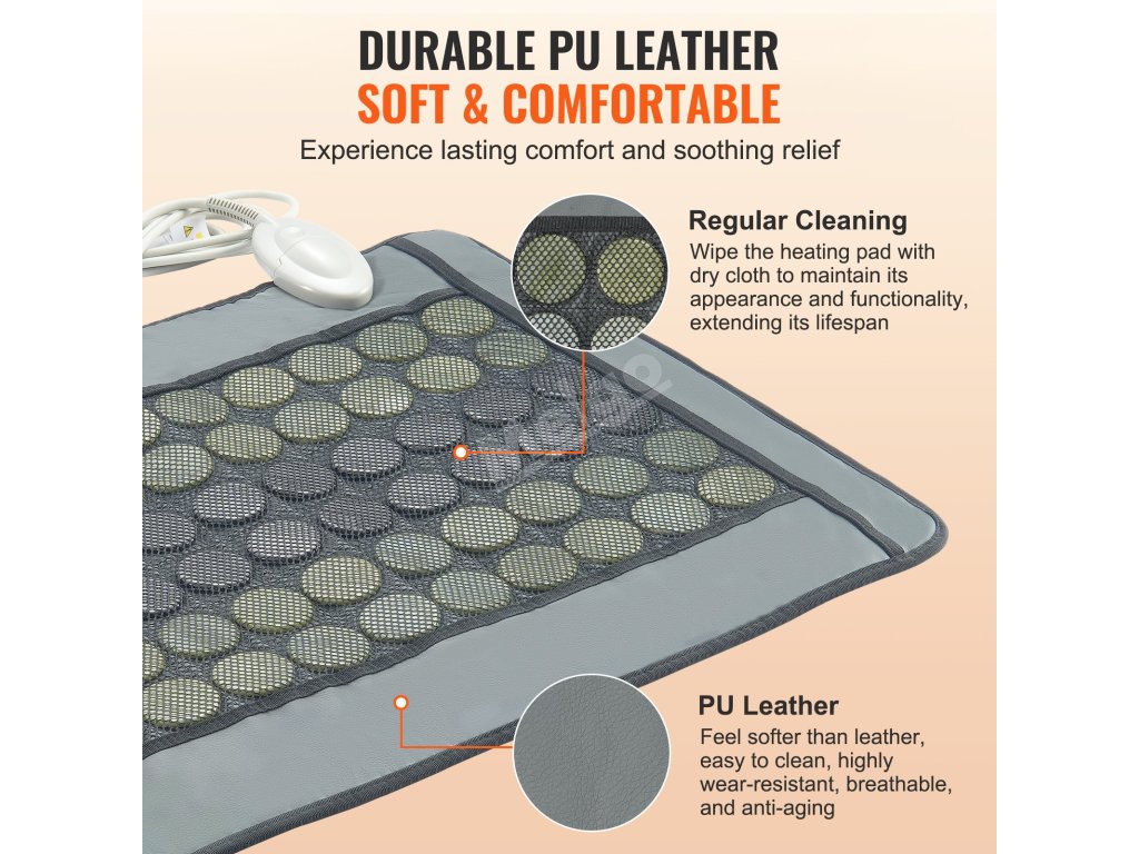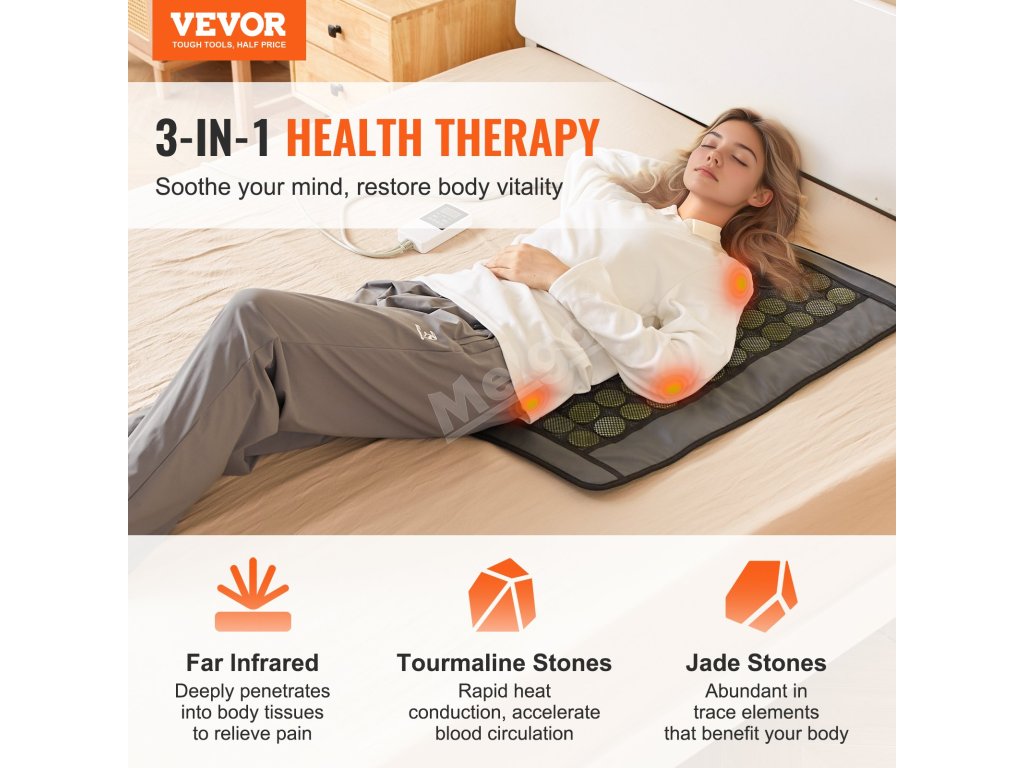 Daleko infračervená vyhřívací podložka VEVOR je ideální volbou pro ty, kteří hledají uklidňující teplo a zdraví. Kombinuje daleké infračervené paprsky, 48 přírodních nefritových a 24 turmalínových kamenů, hloubkově zklidňuje svalové napětí, podporuje krevní oběh a zlepšuje kvalitu spánku. Vyberte si ji a osvojte si zdravější život!