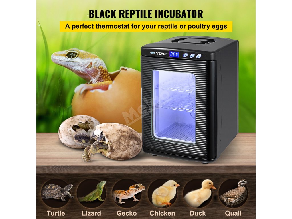 Inkubátor lze široce použít pro inkubaci plazů a drůbeže, jako jsou želvy, ještěrky, gekoni, kuřata, kachny, křepelky atd. 21 dní 35-38 ℃/95-100℉ se navrhuje pro drůbeží vejce.