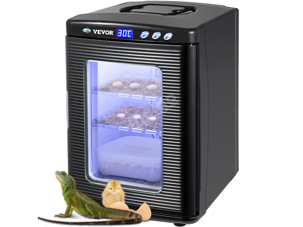 Inkubátor vajec je navržen s viditelnými dvířky z PVC pro lepší pozorování. Díky zabudovanému madlu a hmotnosti 13 kg jej lze navíc přenášet.