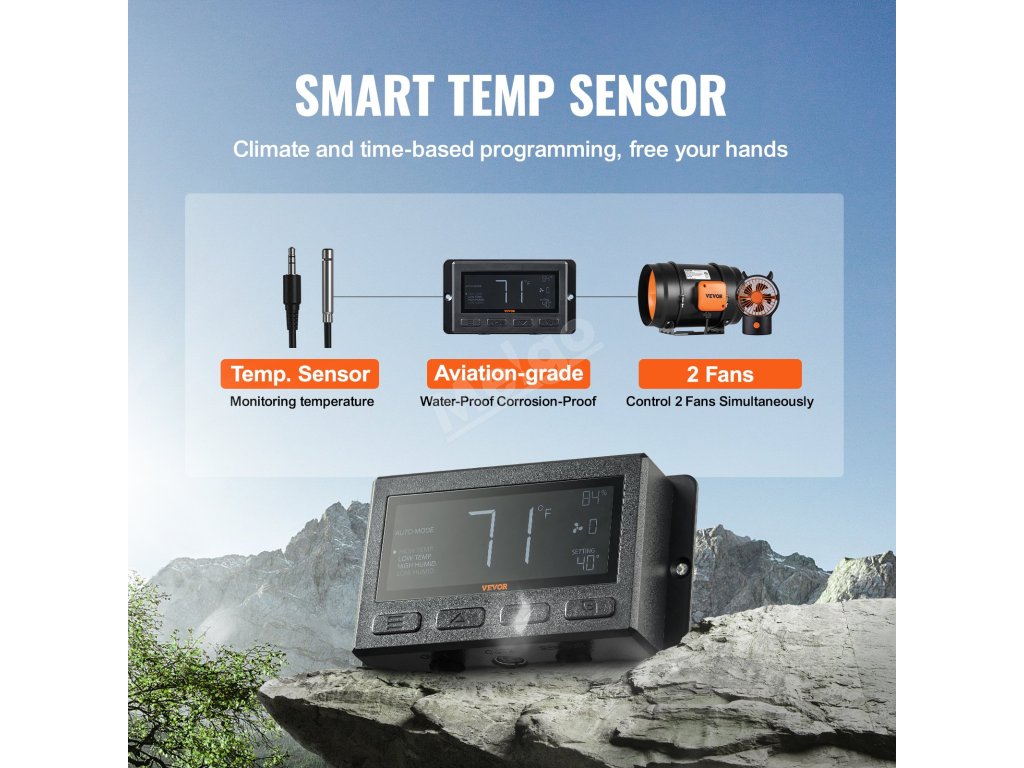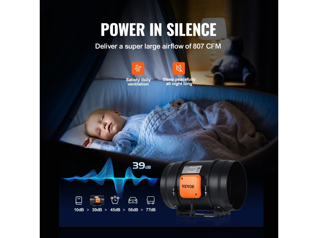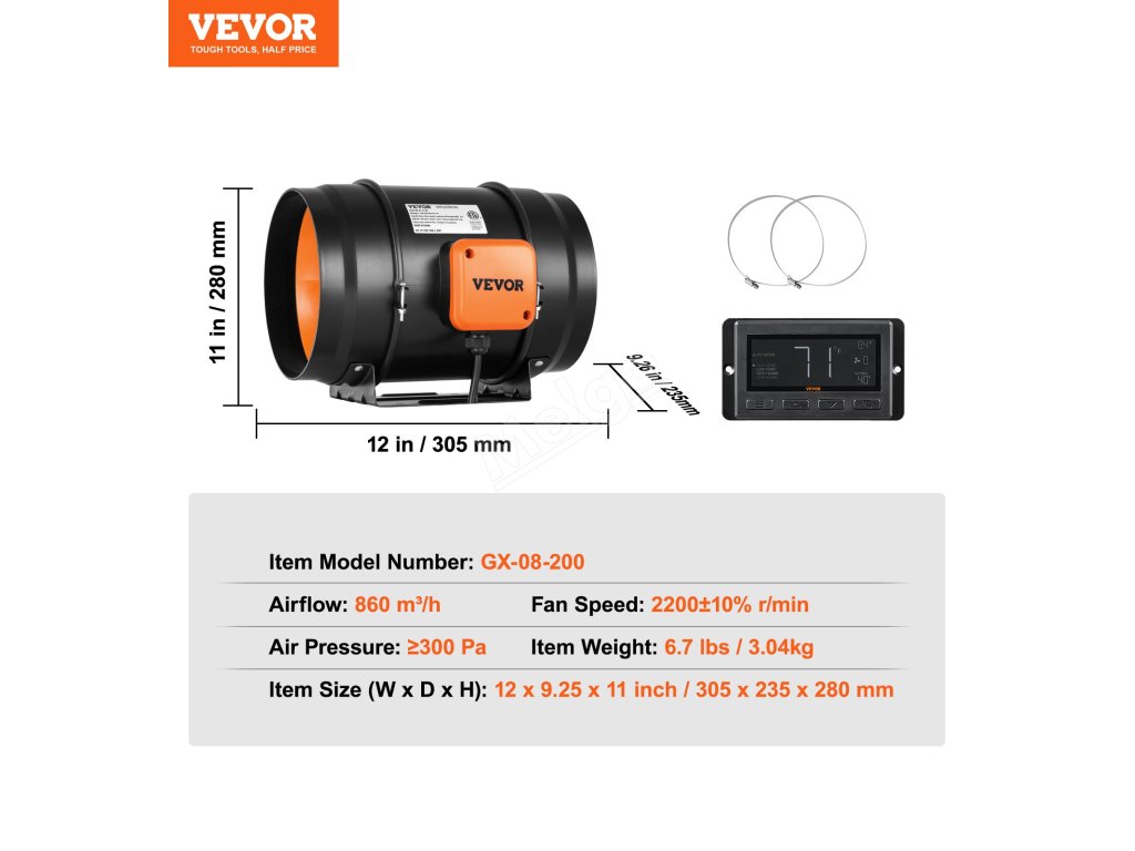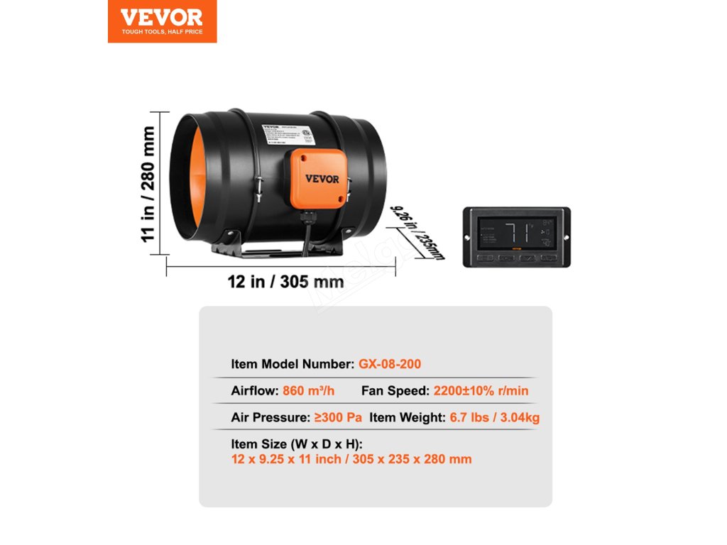 Inline ventilátor 203.2mm 506.2cfm ec-motor s regulátorem temp. a vlhk.
