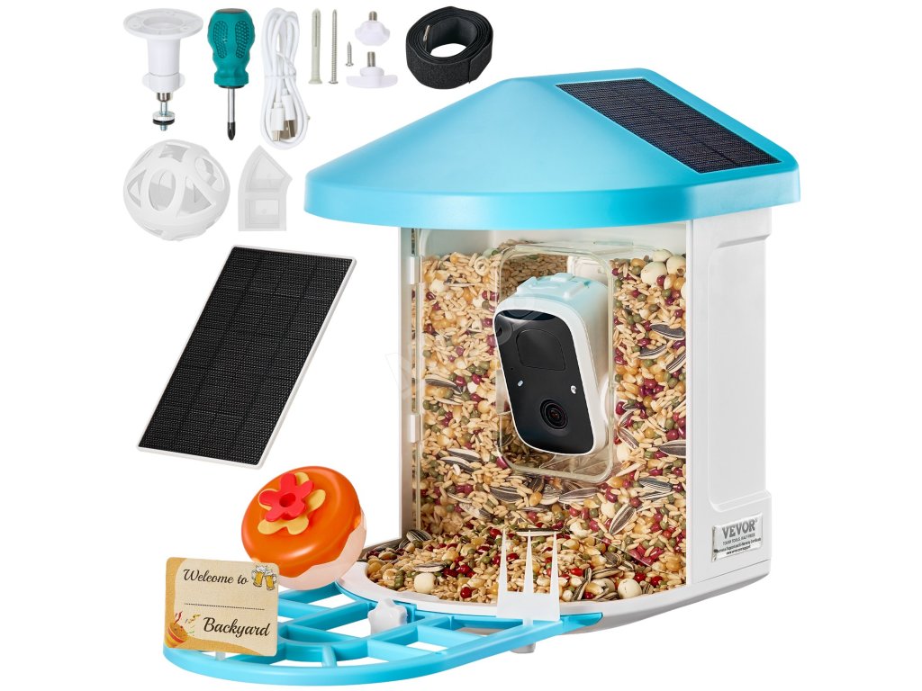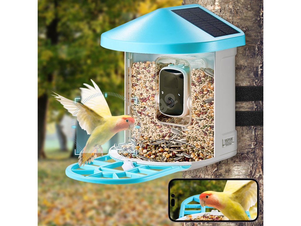 Inteligentní krmítko pro ptáky VEVOR s 2K HD kamerou se 145° širokým úhlem záběru a plně barevným nočním viděním poskytuje úžasnou čistotu a detaily. Díky rozpoznávání umělé inteligence a stabilnímu 2,4GHz Wi-Fi připojení můžete sledovat své opeřené návštěvníky v reálném čase a užívat si bližší spojení s přírodou.