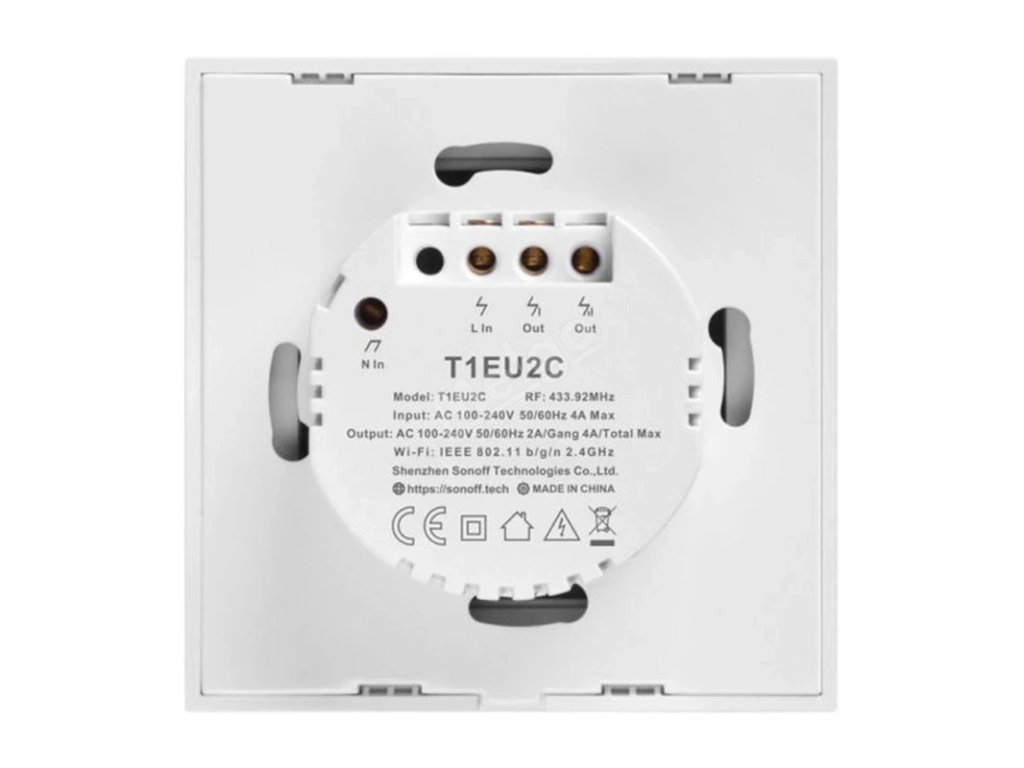 Inteligentní přepínač WiFi + RF 433 Sonoff T1 EU TX (2kanálový)