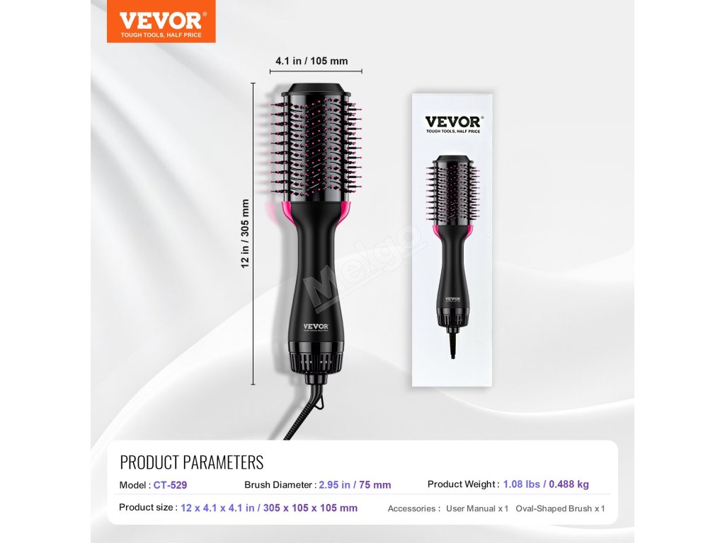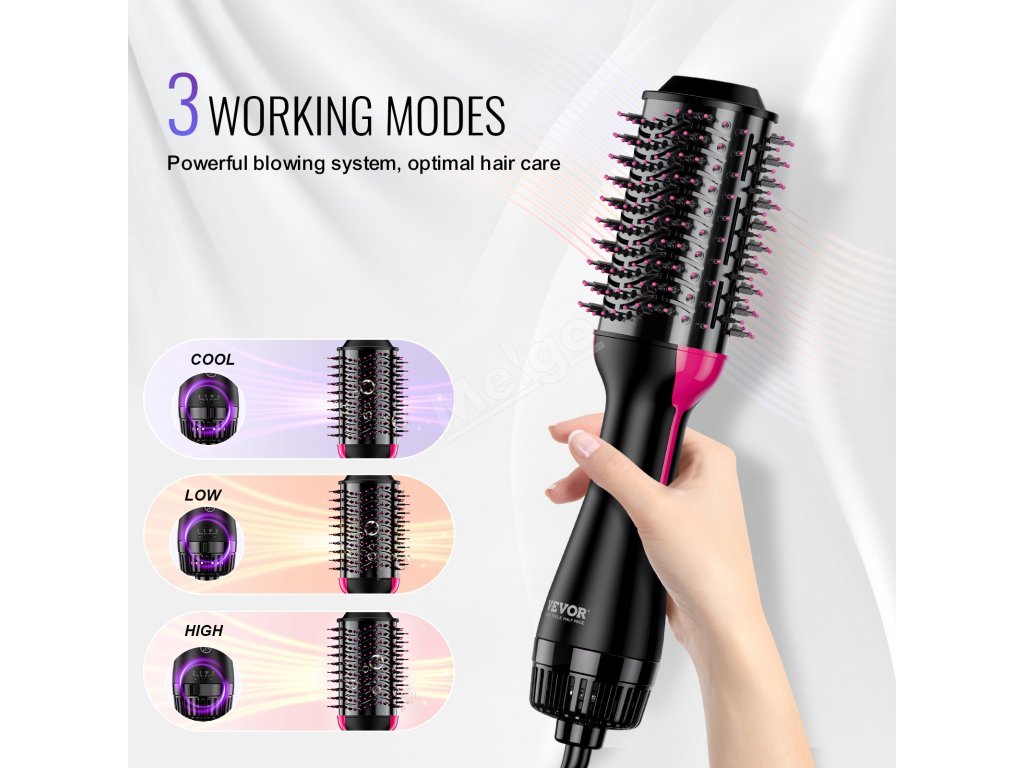 VEVOR 4 v 1 kartáč na vysoušení vlasů: váš stylingový kouzelník! Bez námahy dosáhnete vysoušení, kulmování, narovnávání a zvětšování objemu vlasů a splníte tak všechny své kadeřnické potřeby. Díky pokročilému keramickému povlaku a 30W+ záporným iontům účinně snižuje poškození způsobené teplem a zároveň uzamyká vlhkost pro hladší a zdravější vlasy.