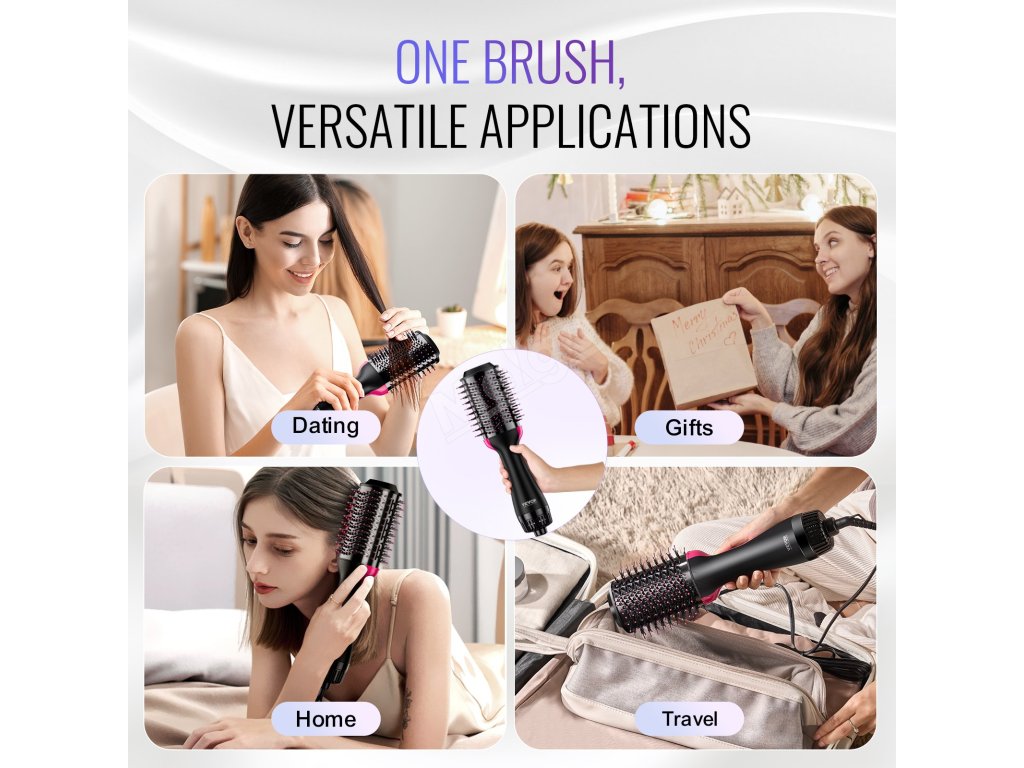 Tento styler pro objem vlasů je dokonalým společníkem pro váš každodenní život, vhodný pro domácí použití, dárky, cestování i randění. Ať už si upravujete vlasy doma, nebo dáváte pozorný dárek přátelům a rodině, tento kartáč na objem vlasů splní všechny jejich potřeby při úpravě vlasů.