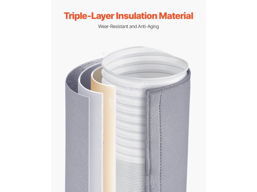 Tento izolační návlek na hadici pro přenosné klimatizace je navržen z třívrstvého izolačního materiálu a účinně blokuje přenos tepla, odolává opotřebení a stárnutí a prodlužuje životnost hadice.