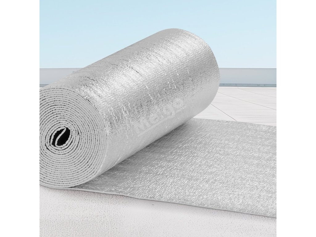 Naše tepelně izolační role je vyrobena z oboustranné hliníkové fólie, která odráží většinu sluneční energie, a z pěnového jádra EPE, které blokuje přenos tepla, a nabízí tak výjimečnou tepelnou izolaci, která poskytuje chlad v horkém létě a teplo v chladné zimě.