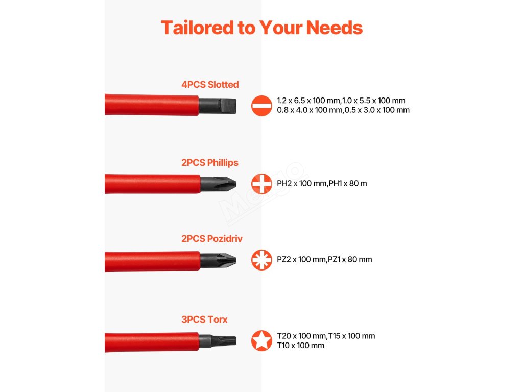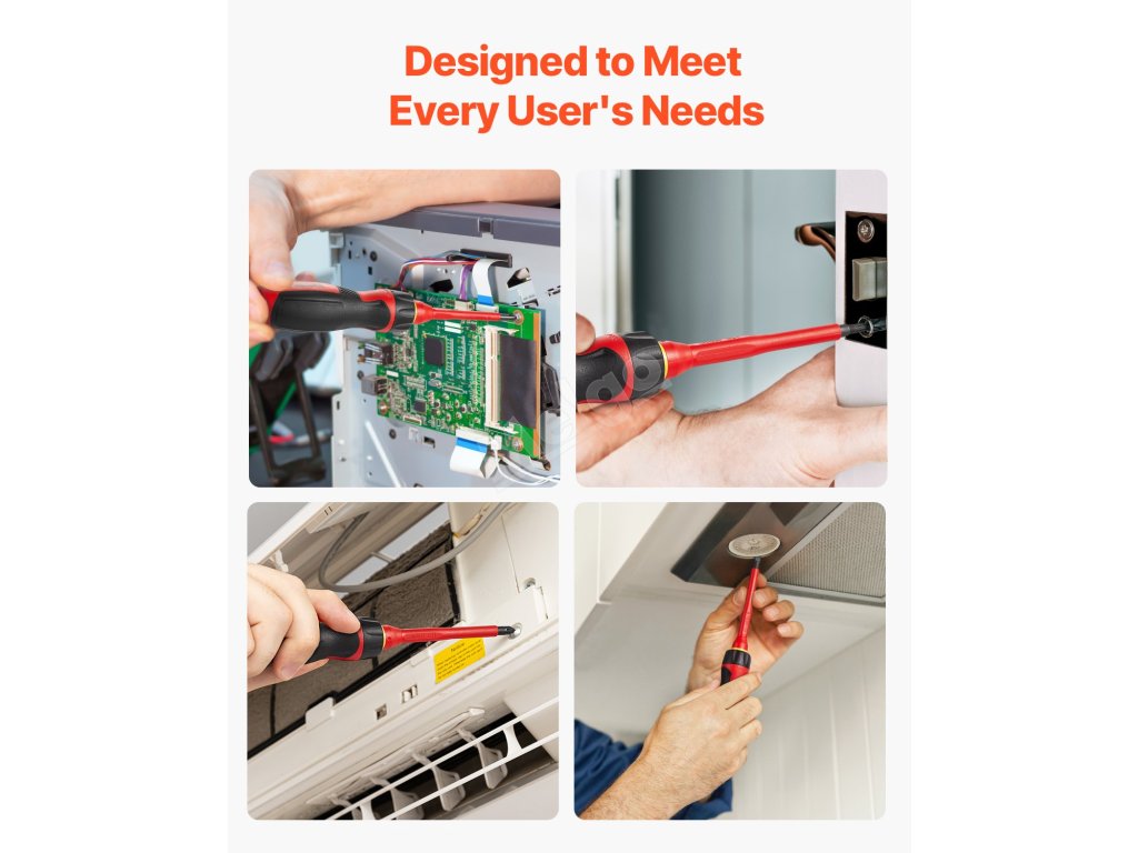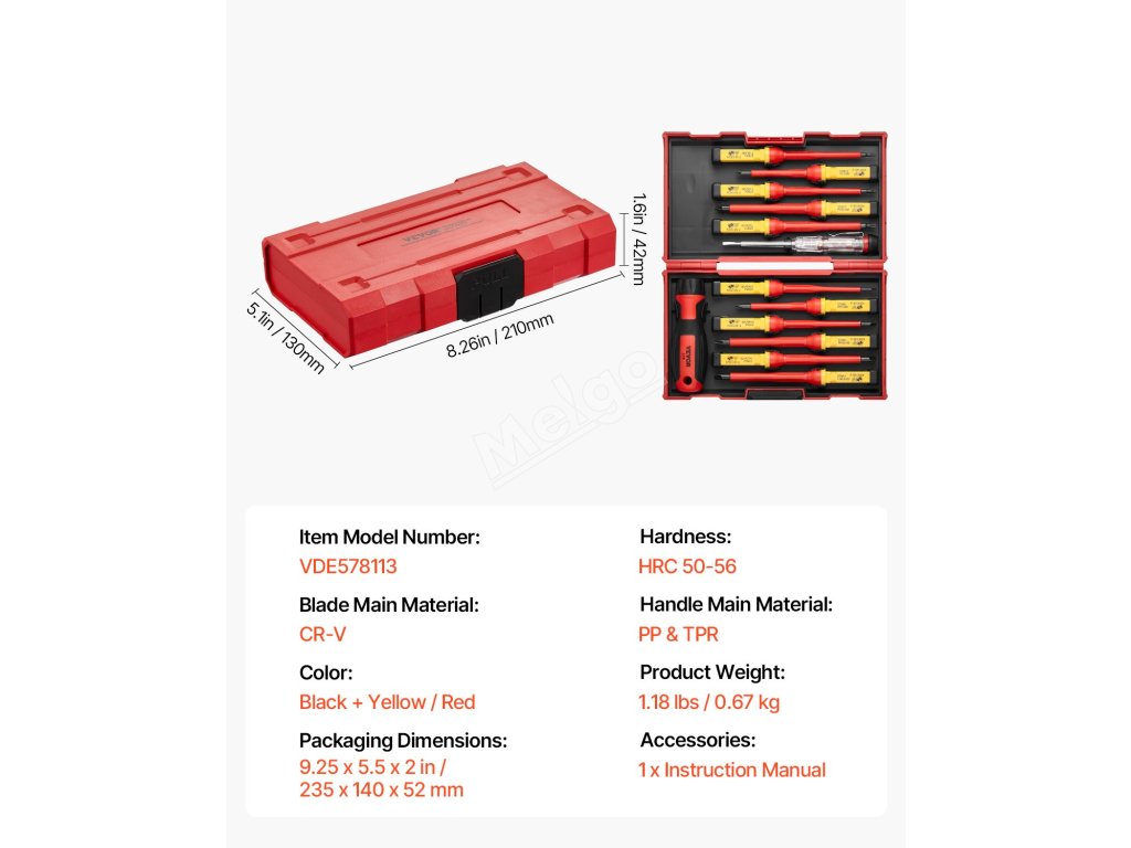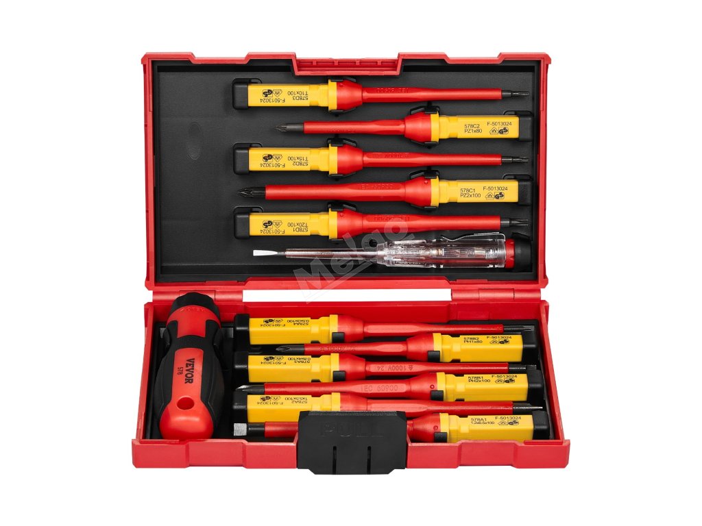 Tato 13dílná sada izolovaných šroubováků je určena pro různé opravy. Díky své vynikající přenosnosti a praktičnosti je skvělou volbou pro každodenní domácí opravy, profesionální elektroúdržbu a práce v automobilovém průmyslu.