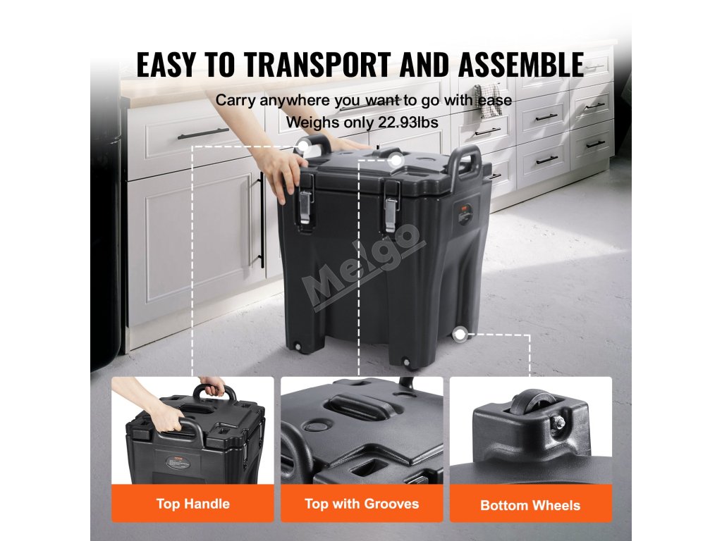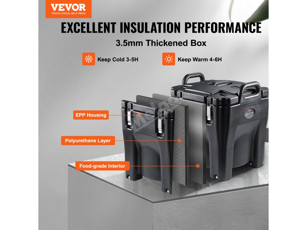 Izolovaná nádoba na potraviny o objemu 32 QT pojme velké množství potravin a je vhodná pro různé příležitosti, jako jsou restaurace, hotely, venkovní bankety a kempování!