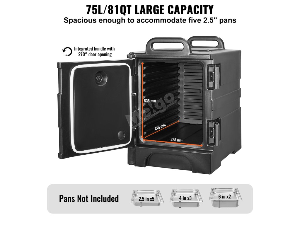 Izolovaný box na jídlo 81 qt, přední plnění, dvojité přezky