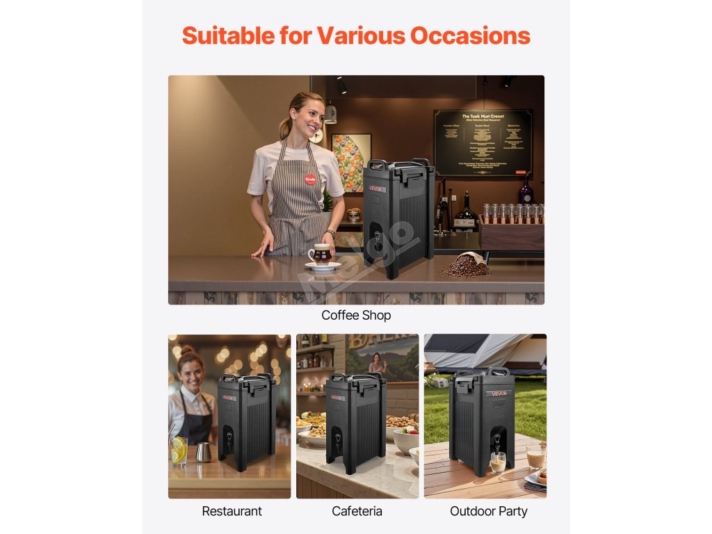 Tento izolovaný nápojový automat nabízí velkou kapacitu pro nepřetržité podávání teplých nebo studených nápojů a splňuje požadavky kaváren, restaurací, bufetů, venkovních akcí a dalších zařízení.