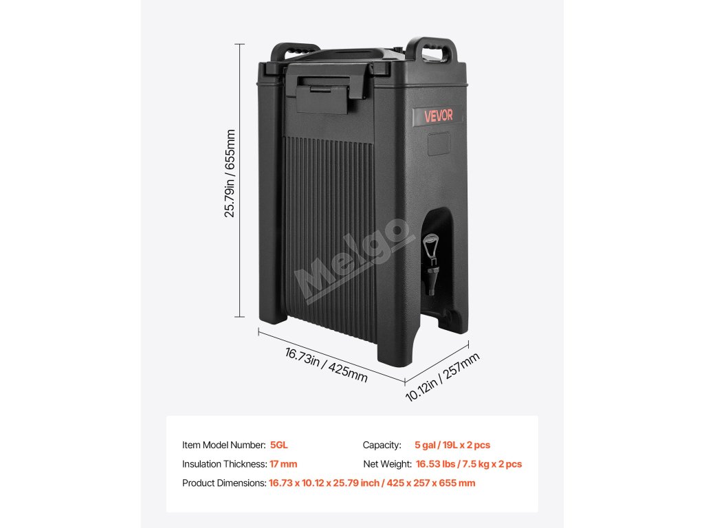 Izolovaný dávkovač nápojů 19 l (5 gal) s kohoutkem a rukojetí
