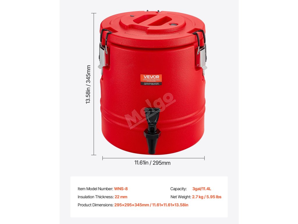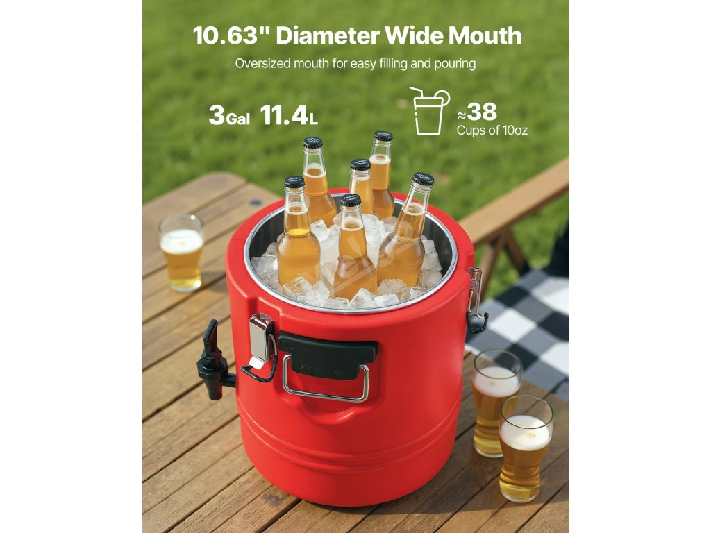 Izolovaný dávkovač nápojů 3 Gal/11.4L, 304 nerez, s kohoutkem