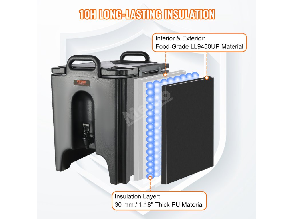 Ať už jde o džus, kávu, mléko nebo čaj, náš 10galonový (37,6l) nápojový automat zvládne vše - horké i studené. Je vybaven vnitřním a vnějším tělem LL9450UP a 1,18palcovou (30mm) vrstvou PU pěny, která udrží vaše nápoje izolované po dobu více než 10 hodin. Ať už je horká, nebo studená, má o vás postaráno!