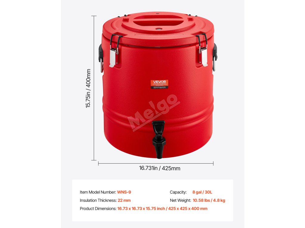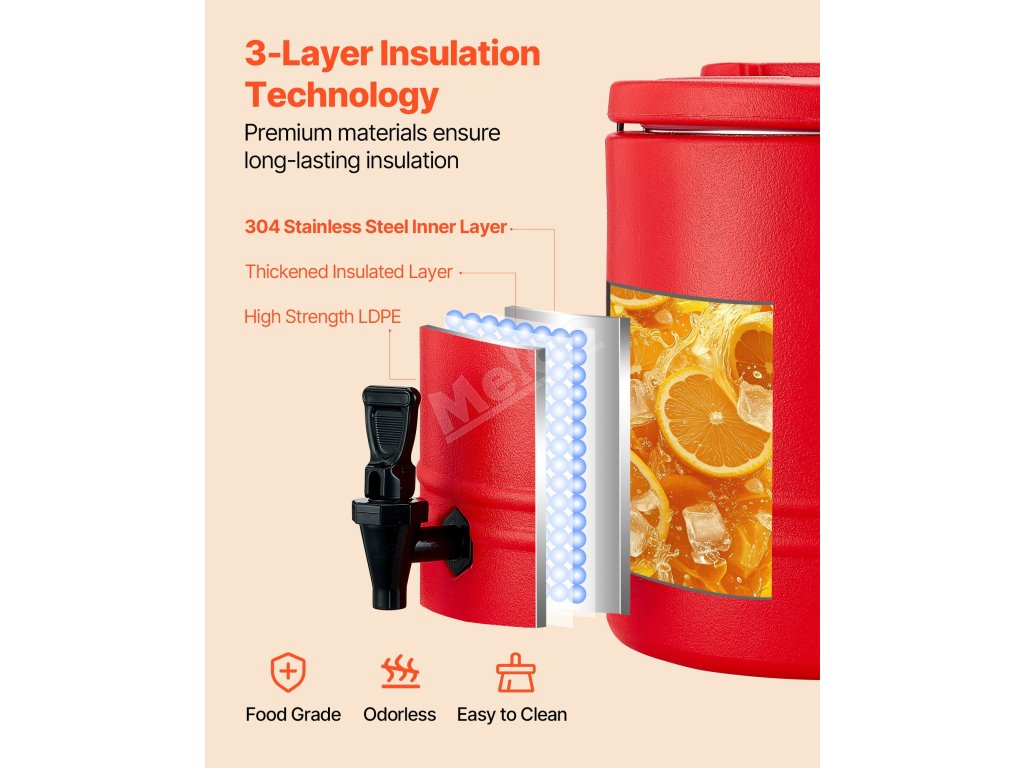 Izolovaný dávkovač nápojů 8 gal/30.3l, kohoutek, 304 nerezový vnitřek