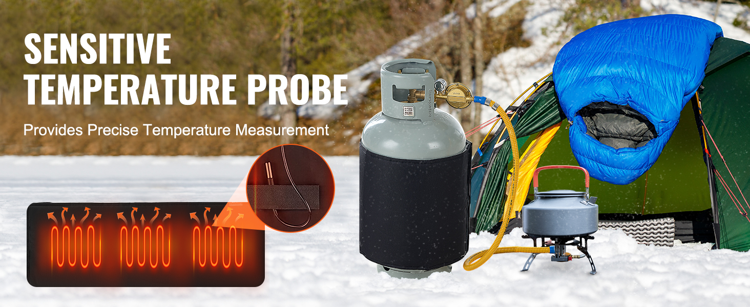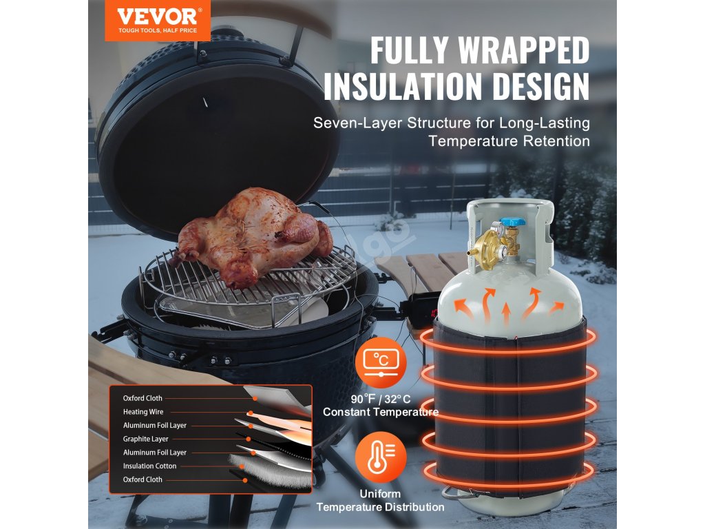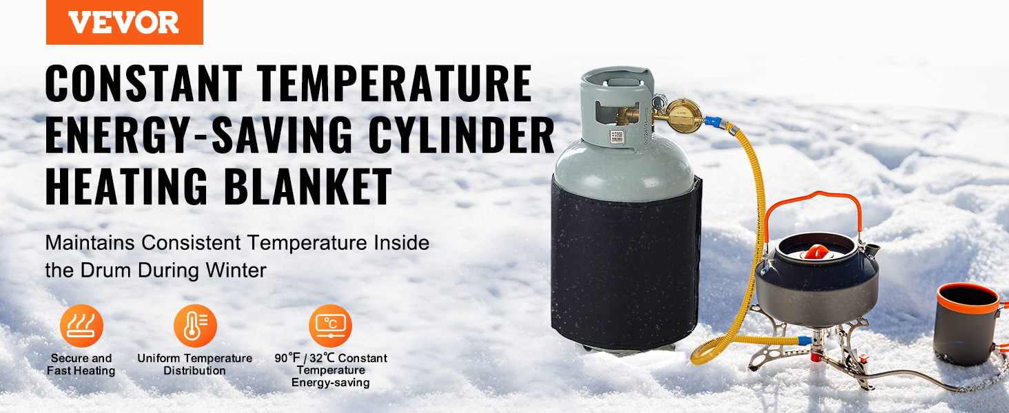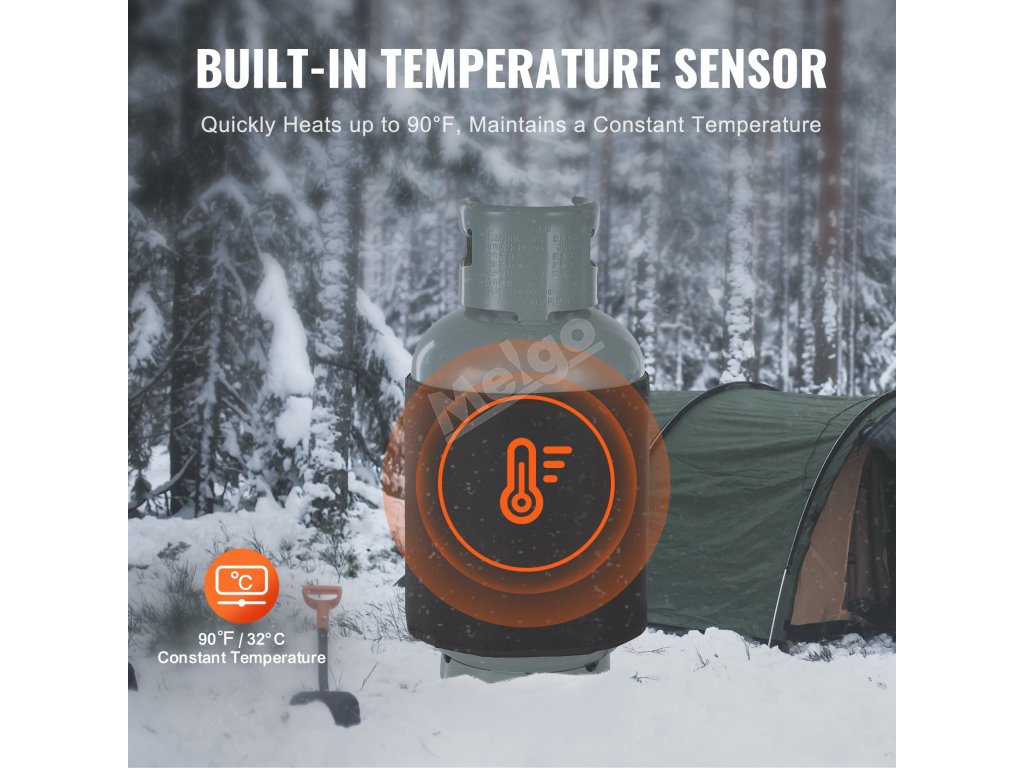 Ohřívací dečka VEVOR pro propanbutanové láhve ohřívá láhev rychle a rovnoměrně. Udržuje konstantní teplotu, jakmile dosáhne 90℉/32 ℃, čímž zabraňuje plýtvání energií v důsledku nízkých teplot při výstupu plynu.