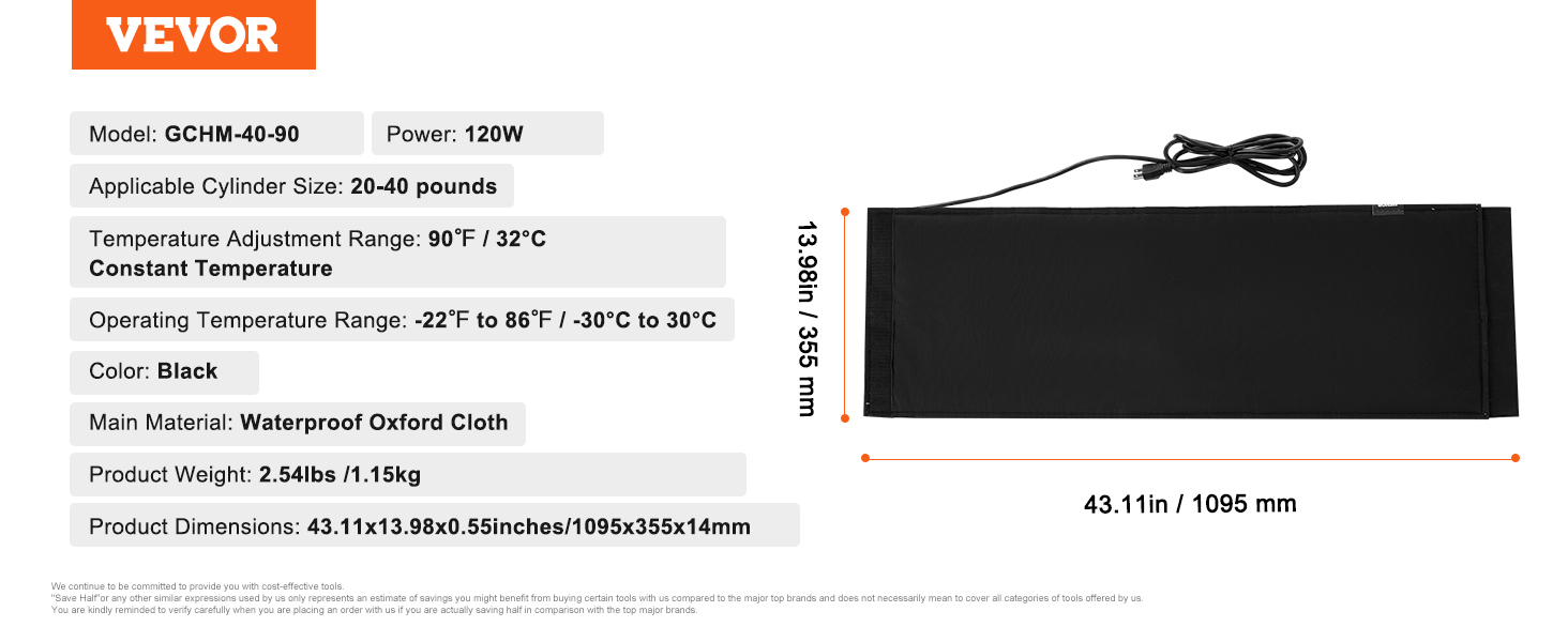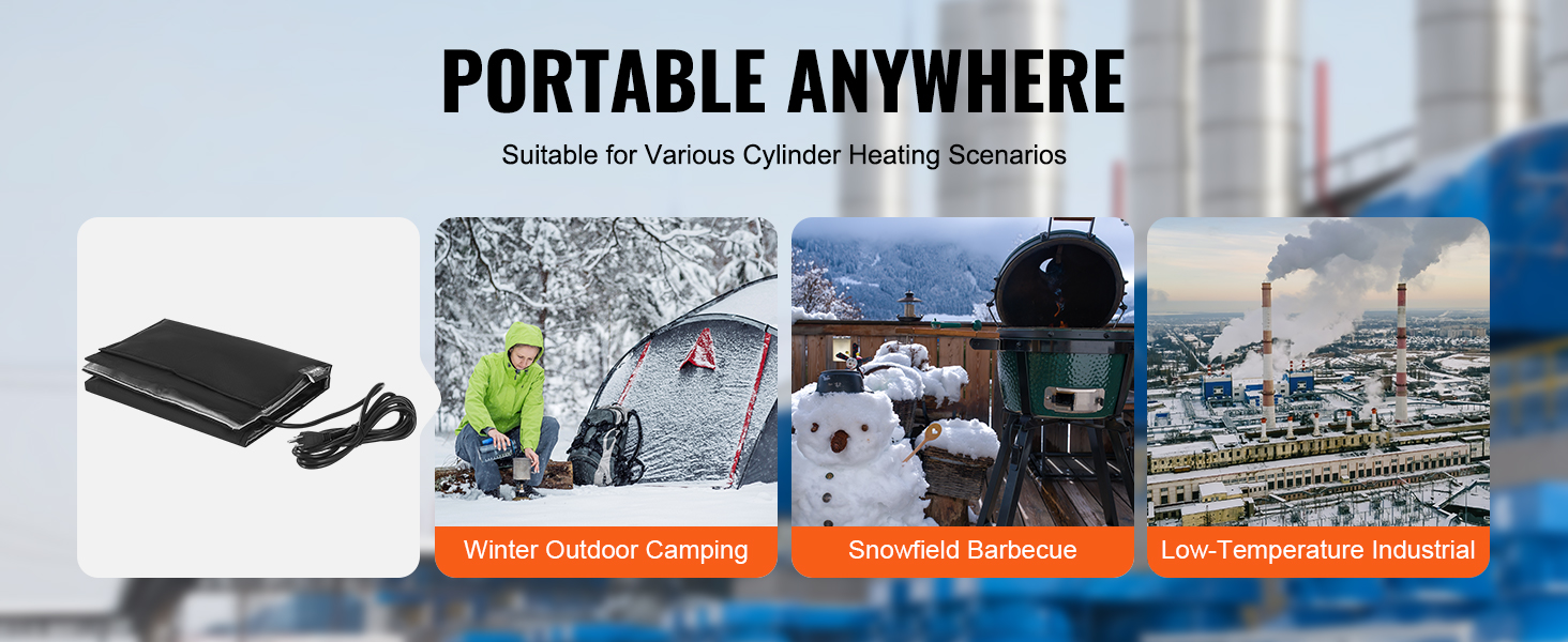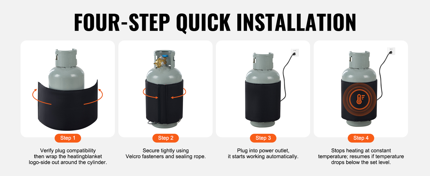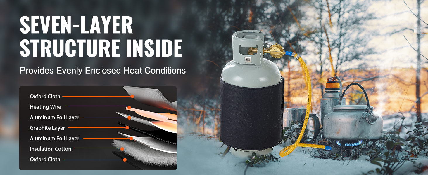 Ohřívací dečka VEVOR pro propanbutanové láhve ohřívá láhev rychle a rovnoměrně. Udržuje konstantní teplotu, jakmile dosáhne 90℉/32 ℃, čímž zabraňuje plýtvání energií v důsledku nízkých teplot při výstupu plynu.
