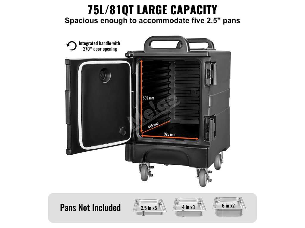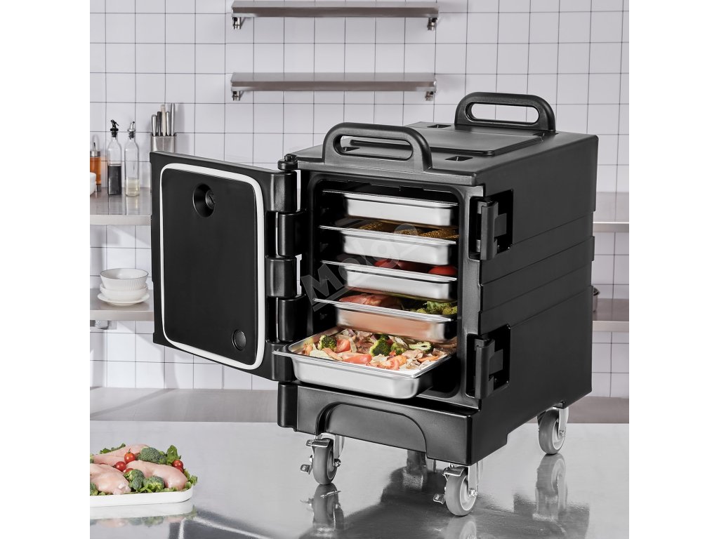 Izolovaný přepravní box na potraviny 81 Qt, přední plnění, kola