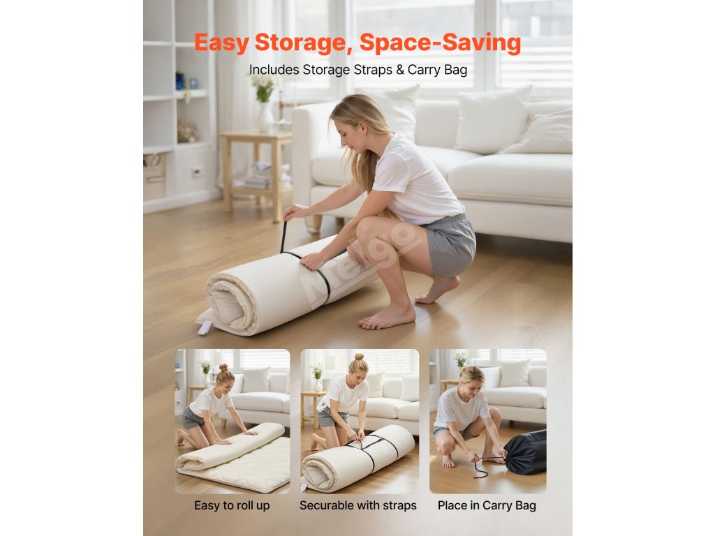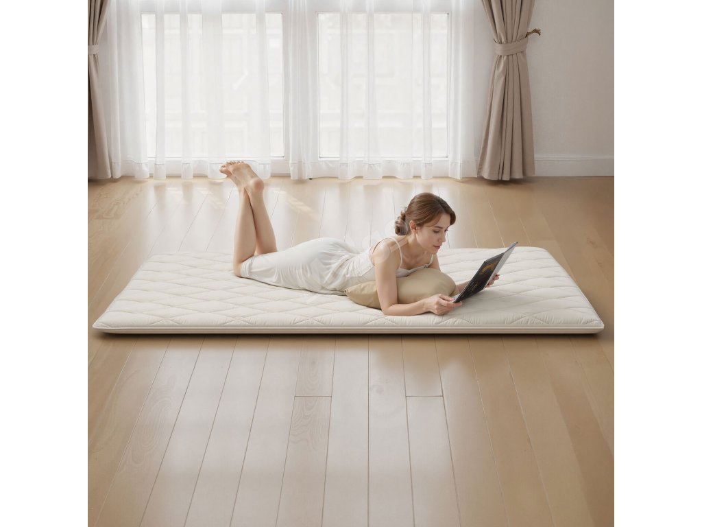 Tato rohož tatami je víc než jen rohož, vytváří osobní spací prostor. Její devítivrstvá struktura rozkládá tlak těla, zabraňuje prověšení a je ideální pro klidný spánek nebo pohodlné cvičení jógy.
