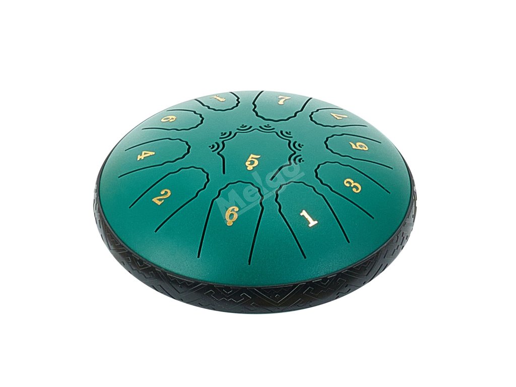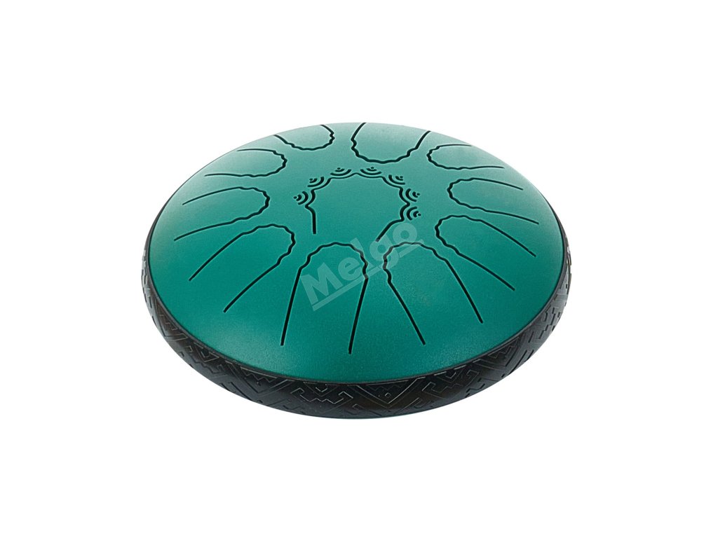 Jazýčkový buben 16.5cm, 11 tónů, D dur, zelený, s hůlkami a notami