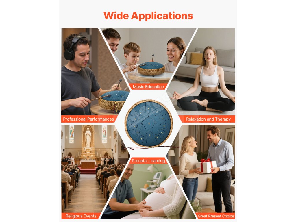 Náš ocelový buben vydává éterický a čistý tón, který léčí mysl. Je to promyšlená volba pro přátele, kteří chtějí zmírnit stres a najít klid. U dětí podněcuje zvědavost, kultivuje hudební vnímavost a podporuje ranou hudební výchovu. Ideální dárek k narozeninám, festivalům a výročím.