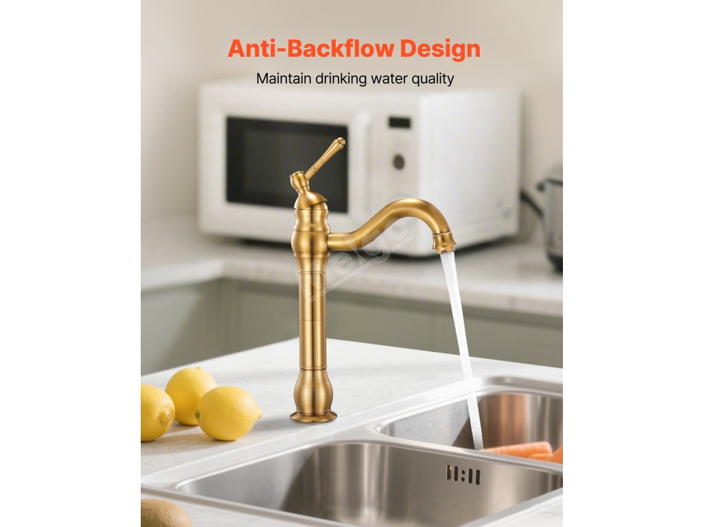 Náhradní kuchyňská baterie VEVOR rv je vybavena flexibilní hadicí, kterou lze ohnout podle potřeby instalace. Opletená konstrukce z nerezové oceli 304 zvyšuje odolnost proti opotřebení a korozi a zajišťuje bezpečný a dlouhotrvající přívod vody bez rizika prasknutí.