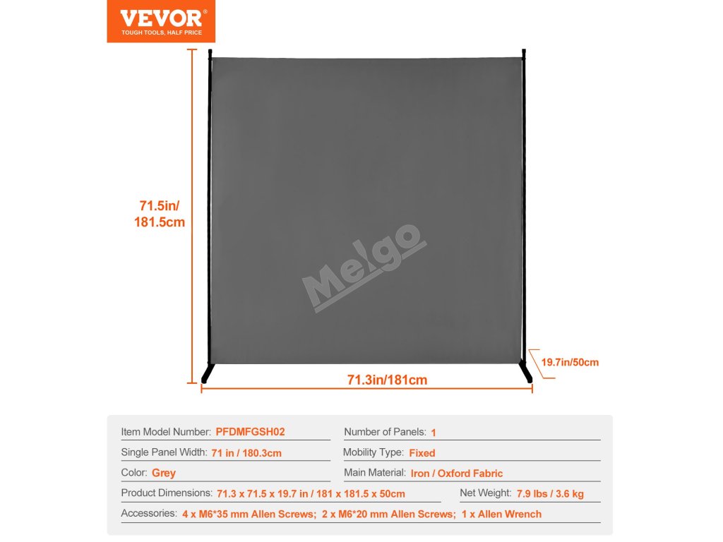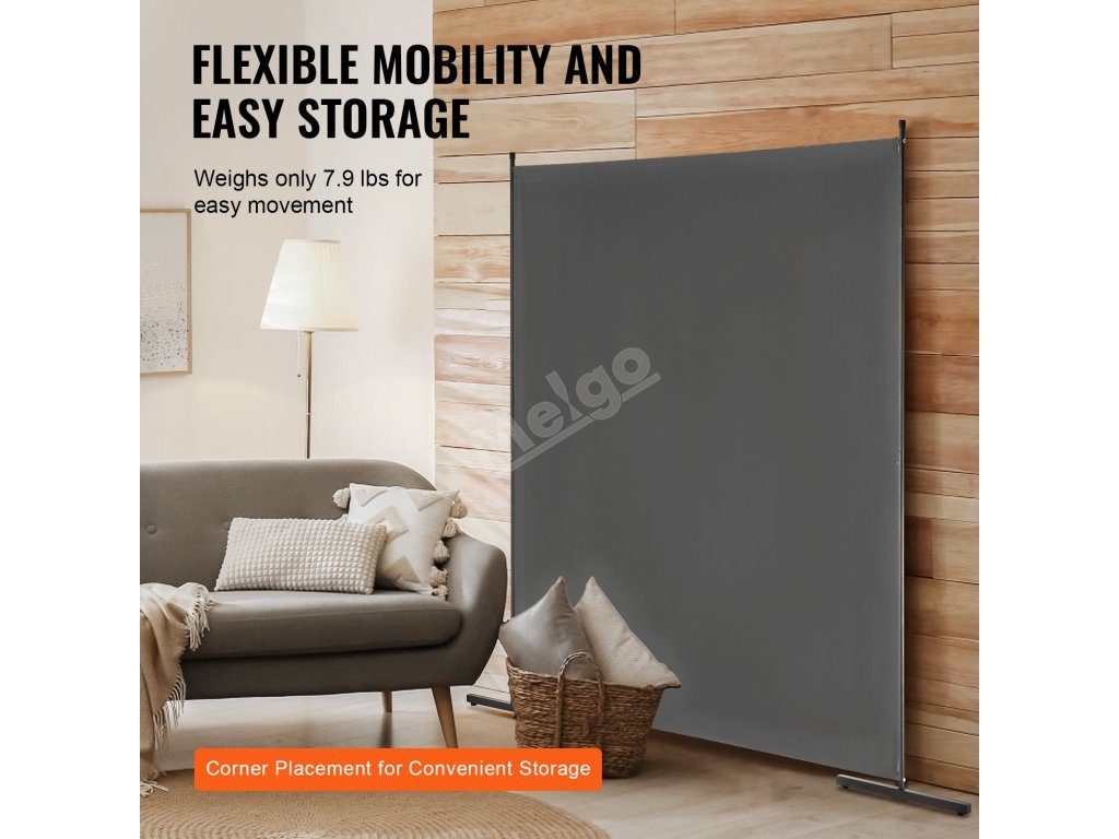 Jednopanelový paravan 6FT volně stojící vnitřní na oddělení, šedý