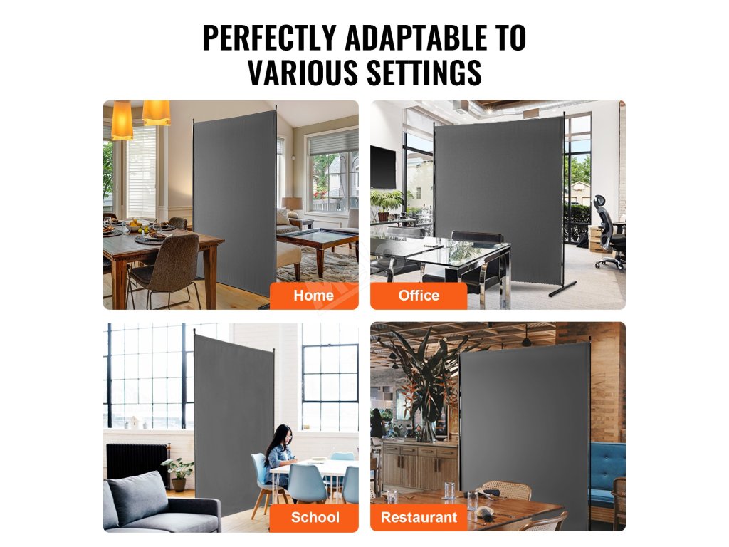 Tento panel pro rozdělení místností slouží k oddělení prostor v obývacích pokojích, kancelářích, školách, restauracích nebo k blokování silného slunečního světla. Může také sloužit jako stylové pozadí pro živé vysílání nebo práci z domova.