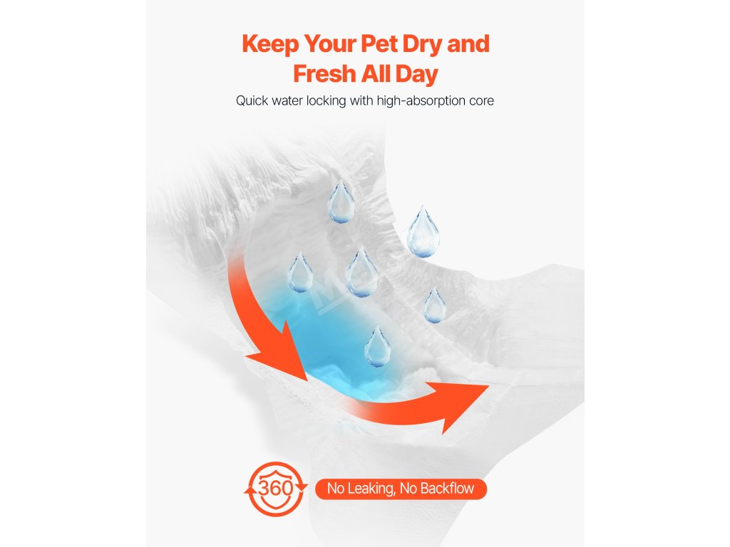 Tyto plenky pro psy mají výjimečnou savost a 360° ochranu proti úniku, rychle zadržují tekutinu a udržují vaše psy v suchu a pohodlí. Jsou vybaveny elastickým pasem, zapínáním šetrným k srsti, otvorem na ocas a indikátorem vlhkosti a výrazně zvyšují pohodlí vašeho psa a komfort při péči o něj.