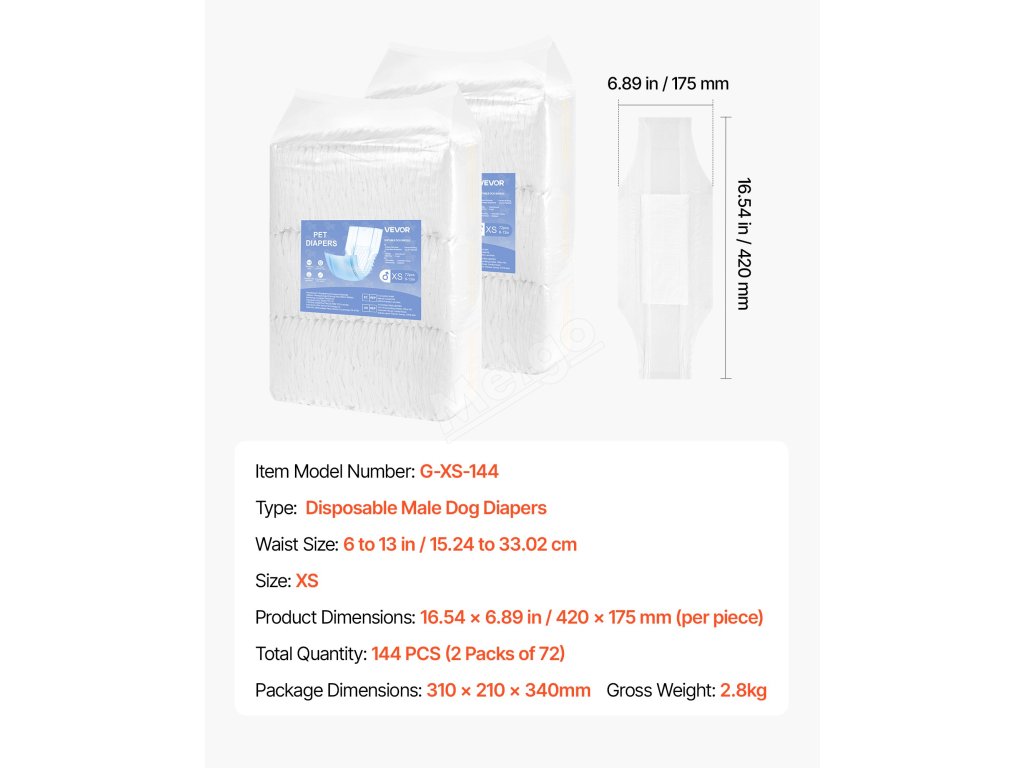 Jednorázové pleny pro psy samců xs, 144 ks 360° ochrana, indikátor
