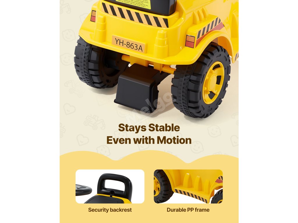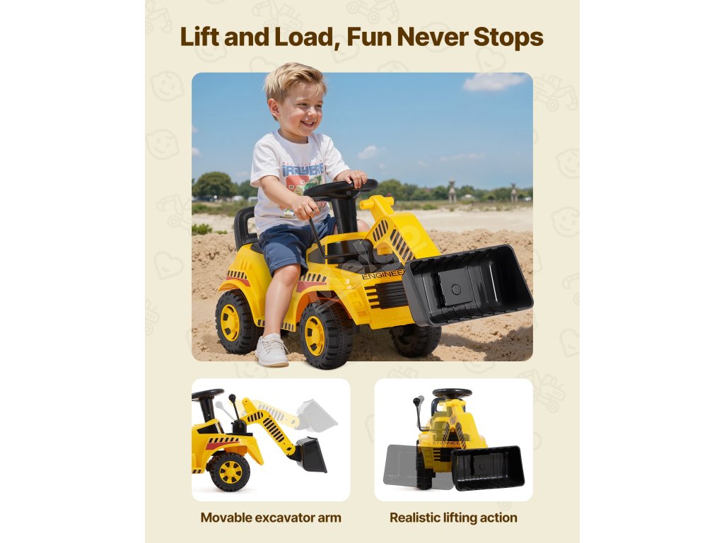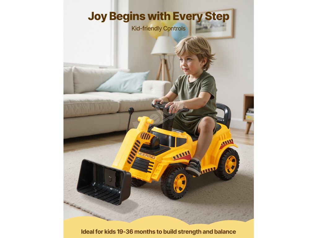 Jezdítko rypadlo 19–36 měsíců, 25 kg, s úložištěm a hudbou, žluté