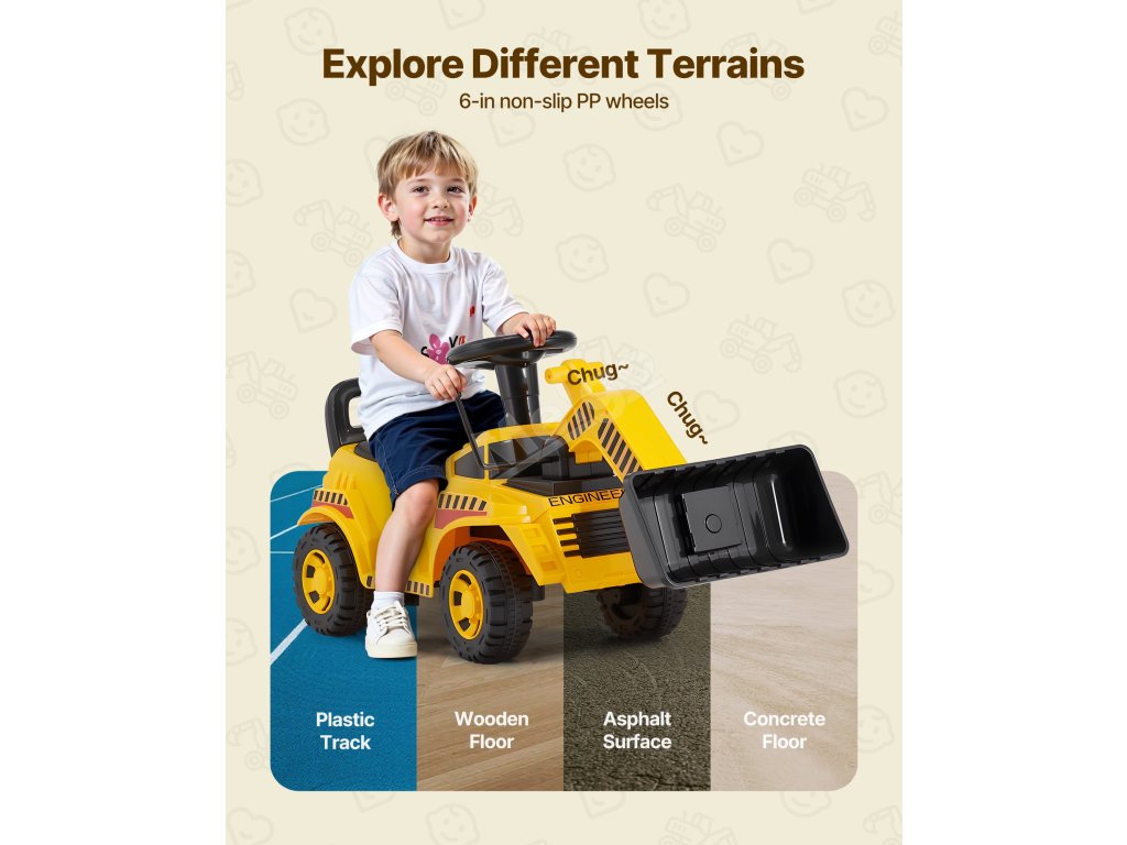 Konstrukce proti překlopení, hladké tělo, pohodlné sedadlo a odnímatelné opěradlo na tlačení auta zajišťují bezpečnost a pohodlí vašeho dítěte během hry.