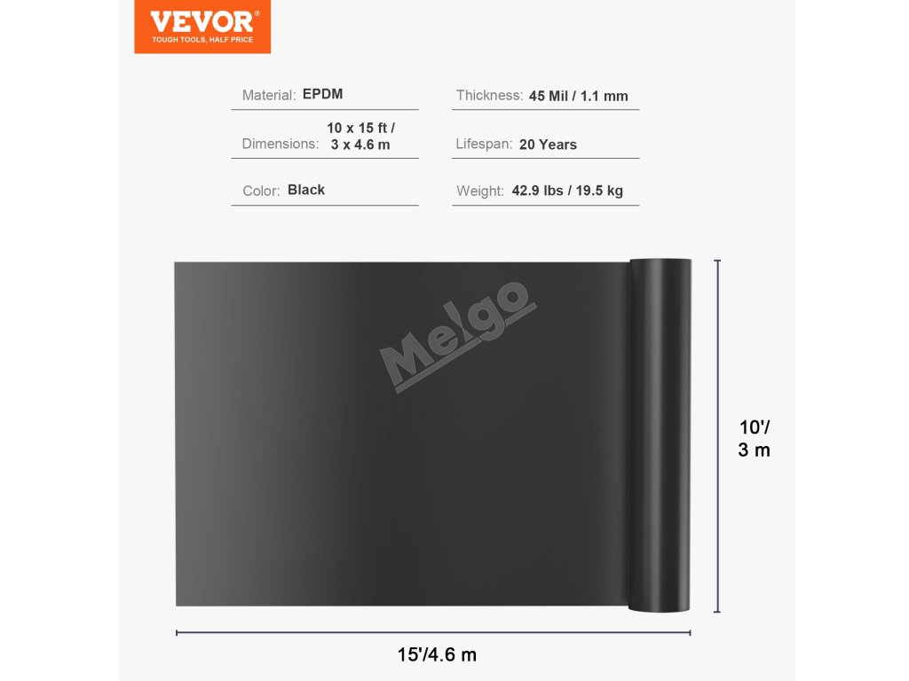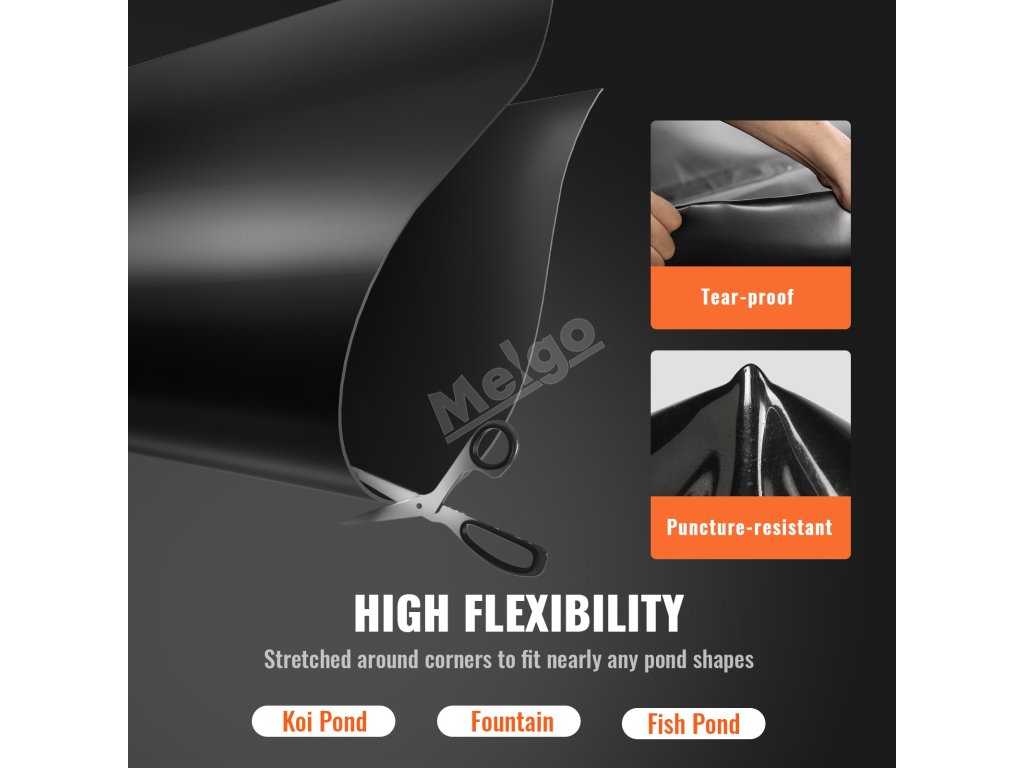 Jezírková fólie 10 × 15 ft, 45 Mil, EPDM, pružná černá pro ryby
