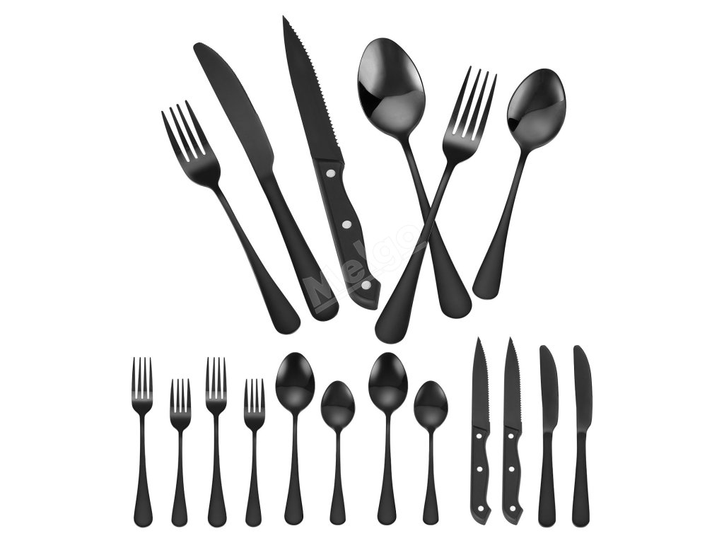 Tato sada obsahuje kombinaci 2 typů lžic, 2 typů vidliček a 2 typů nožů, včetně dezertních lžic, obědových lžic, obědových nožů, dezertních vidliček, vidliček na večeři a příborového nože, které splní vaše každodenní potřeby při stolování.