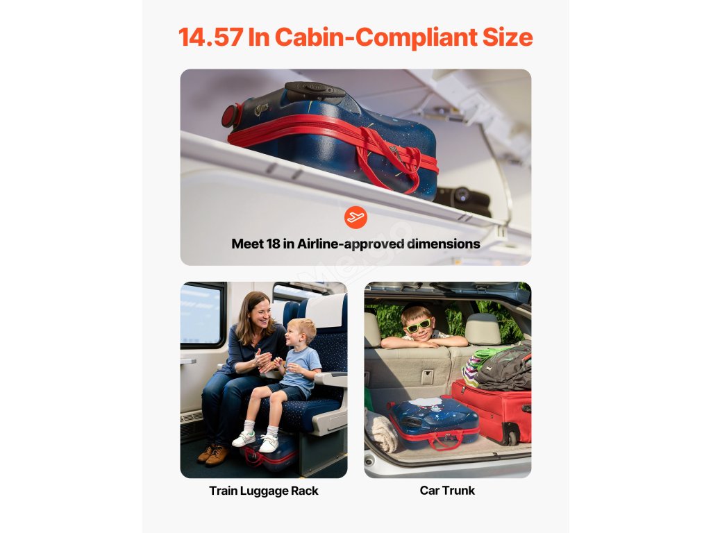 Toto zavazadlo na koloběžce, jehož velikost odpovídá standardům pro příruční zavazadla leteckých společností, se snadno vejde do přihrádek nad hlavou nebo do kufru auta. Rychle se skládá, což snižuje stres z cestování a je skvělým společníkem pro vytížené rodiny.