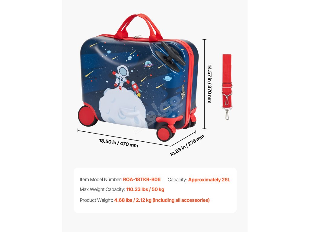Jízdní dětský kufr 26 L, 18 in, kolečka, nastavitelný popruh, 3+